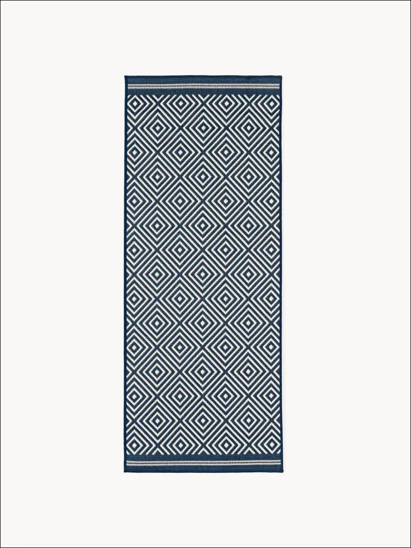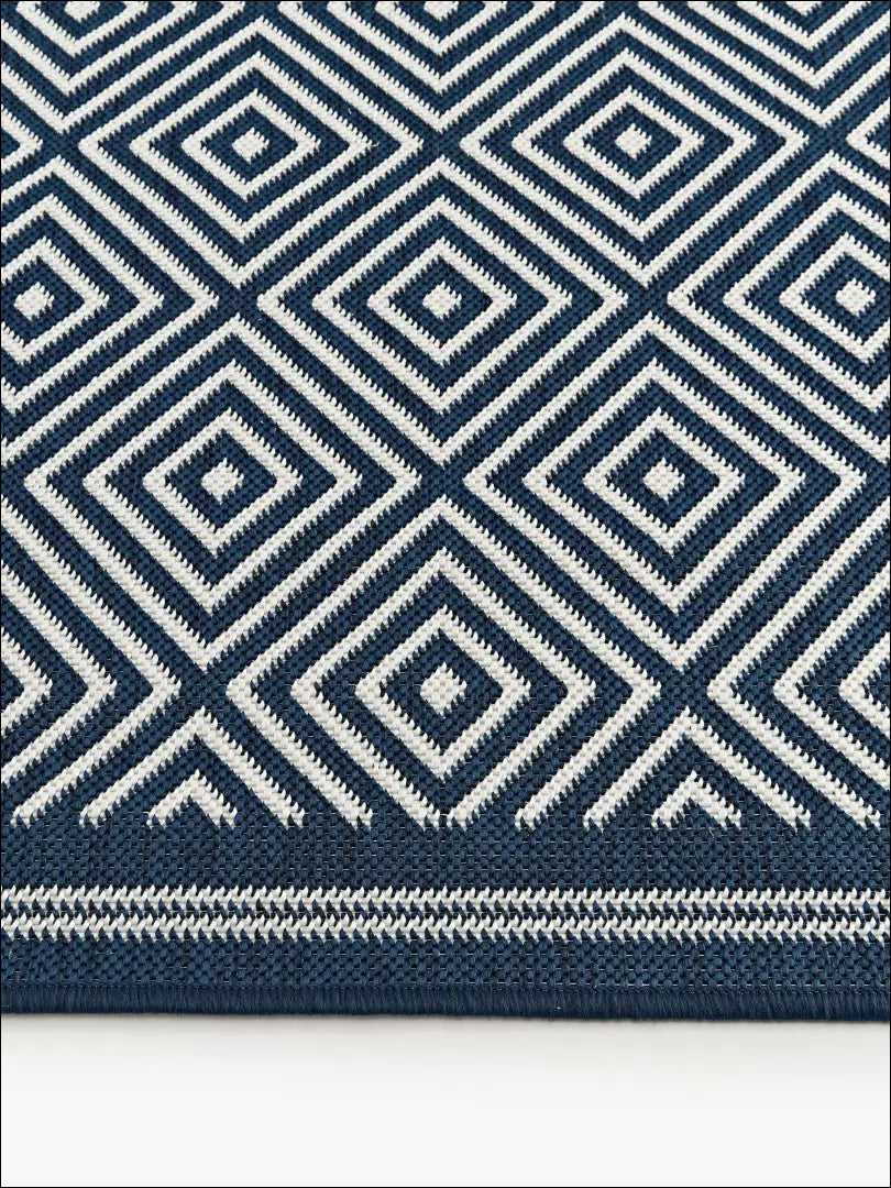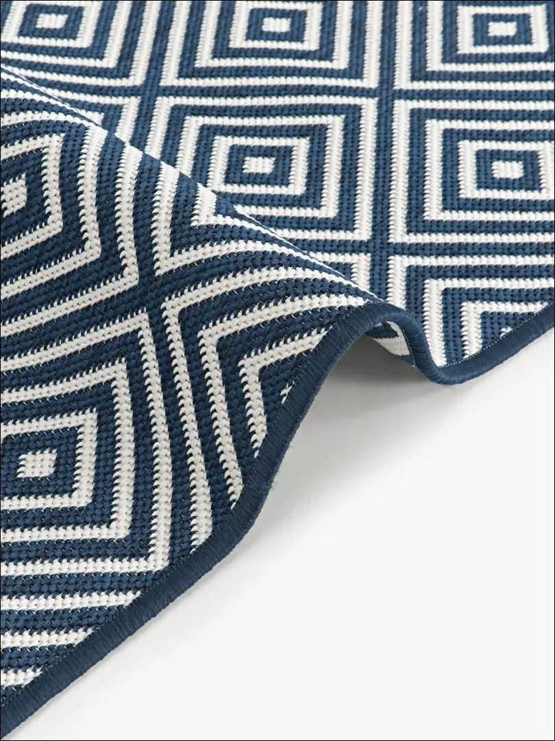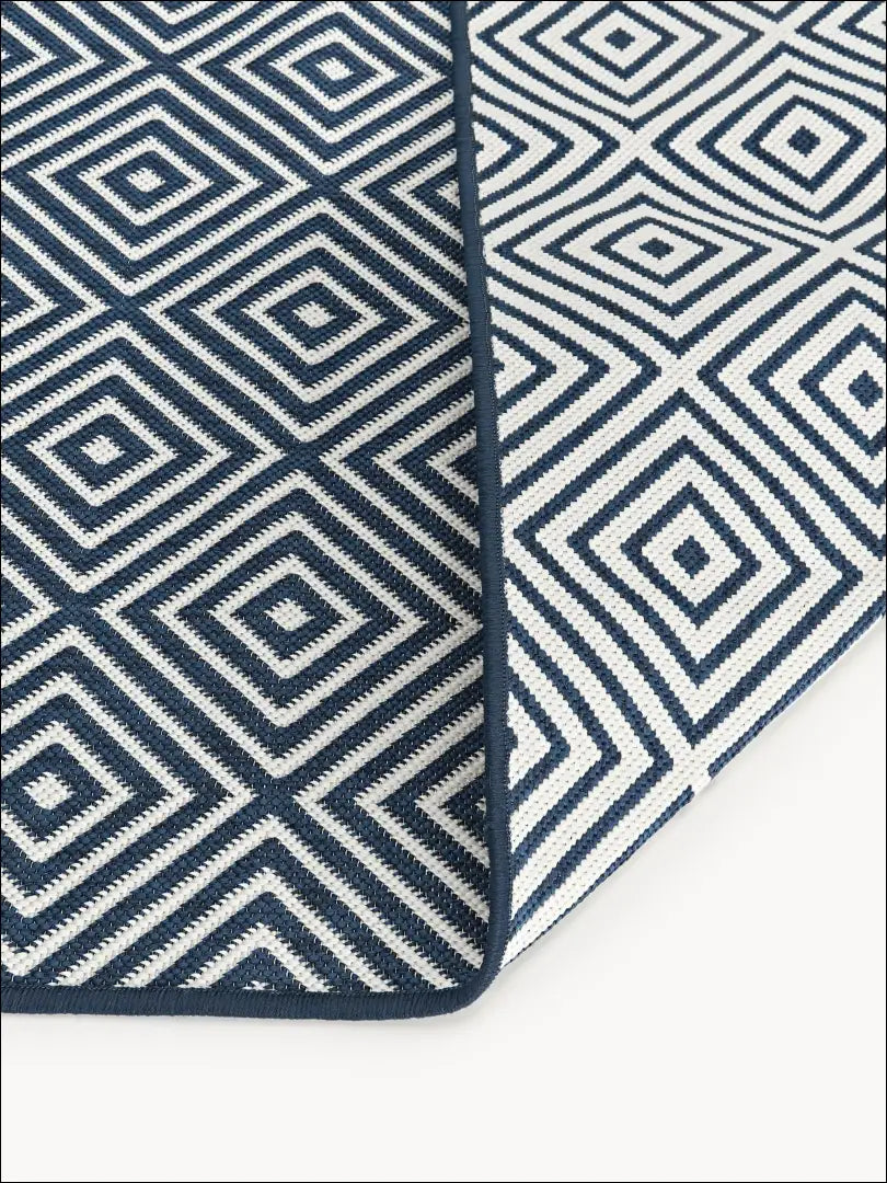 A stylish outdoor rug with a large diamond pattern. It creates a cozy atmosphere on your balcony or terrace. Combine it with other outdoor products and a few plants to create the perfect place to relax outside. Made in Belgium; Durable and easy to maintain: suitable for both indoor and outdoor use; Most stains can be removed with a damp cloth or sponge;  |