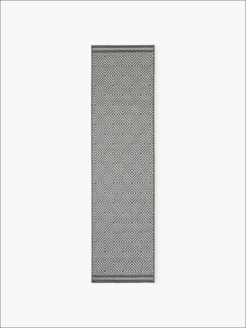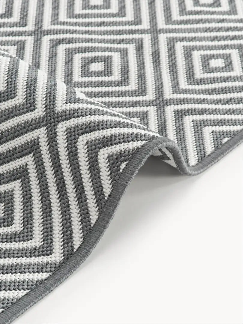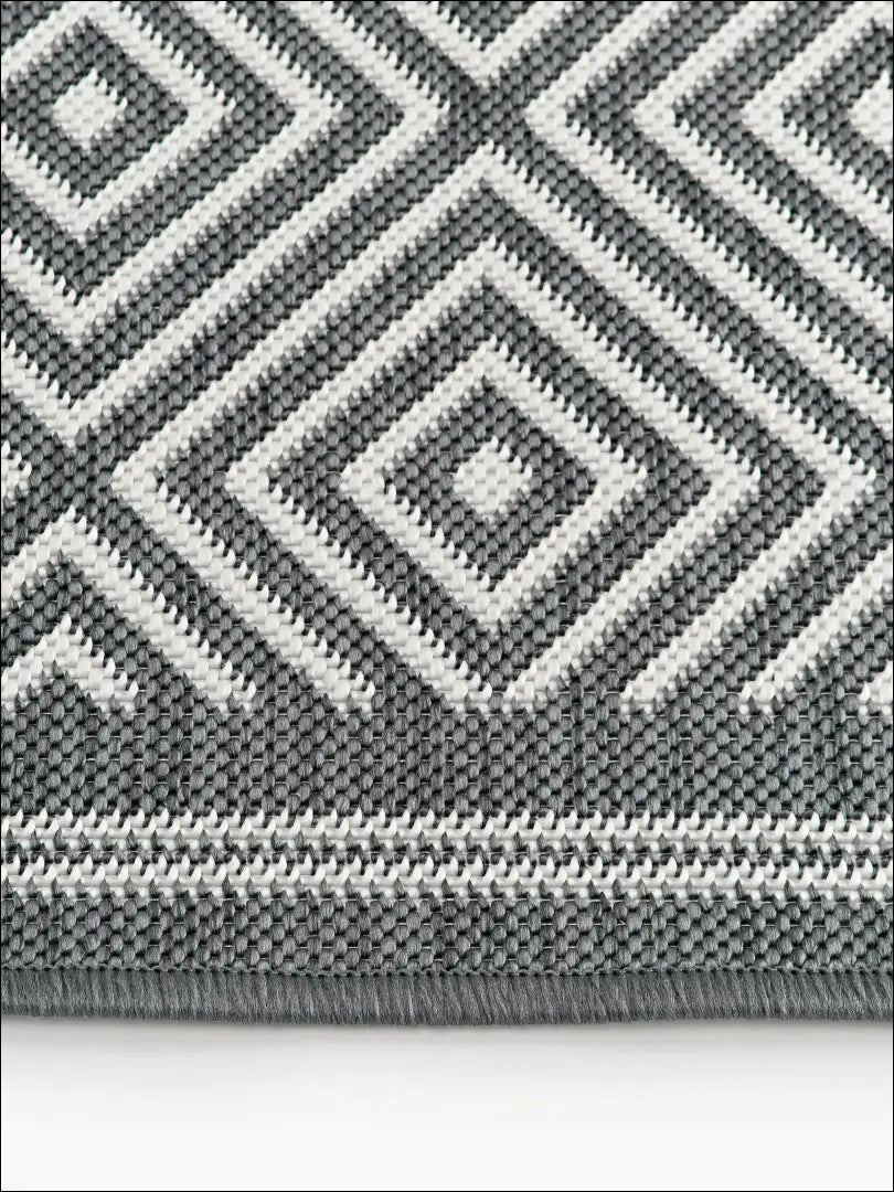 A stylish outdoor rug with a large diamond pattern. It creates a cozy atmosphere on your balcony or terrace. Combine it with other outdoor products and a few plants to create the perfect place to relax outside. Made in Belgium; Durable and easy to maintain: suitable for both indoor and outdoor use; Most stains can be removed with a damp cloth or sponge; |