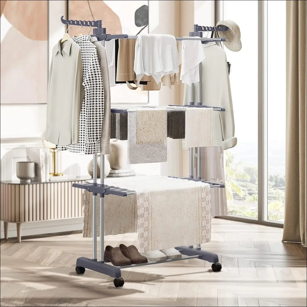 YORKING džiovyklė turi 18 m džiovinimo erdvę ir 14 pakabinimo kabliukų. Atidarius šonines dalis, ji tampa 3 didelėmis plokštumomis. Ši drabužių džiovyklė patenkins visų tipų gaminių džiovinimo poreikius; Keliamoji galia - 40 kg; “Yorking”; Siuntimo pakuotė gali būti ne originali, prekė siunčiama pilnai arba dalinai surinkta; |