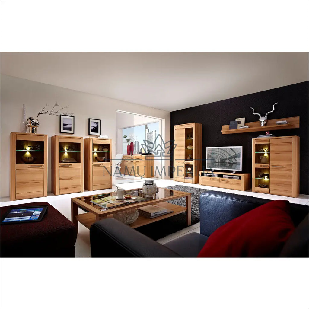 Vitrina su vientiso lakuoto buko priekiu ir buko imitacijos medžio drožlių plokštės korpusu, vienomis stiklinėmis/medinėmis durelėmis, viena stikline lentyna, viena fiksuota lentyna ir viena reguliuojamo aukščio lentyna. Komplekte yra LED apšvietimas; “innostyle”; Siuntimo pakuotė gali būti ne originali, prekė siunčiama pilnai arba dalinai surinkta; |