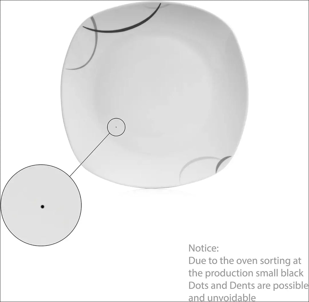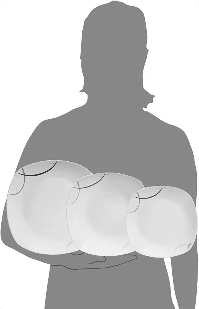 Dinner plate - 25 cm Bowl - 21.5 cm, capacity - 500 ml Salad plate - 18.5 cm |