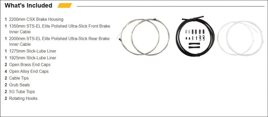 Jagwire Road Elite trosai ir apvalkalai suteikia patikimą ir sklandų stabdžių veikimą jūsų greitkelių dviračiui. Šis komplektas apima aukštos kokybės trosus ir apsauginius apvalkus, kurie sumažina trintį ir užtikrina greitą stabdžių reagavimą. Idealūs dėl jų ilgaamžiškumo ir minimalaus priežiūros poreikio. Puikus pasirinkimas dviratininkams, kurie nori patobulinti savo dviračio stabdžių sistemą be komplikuotų montavimo procedūrų.