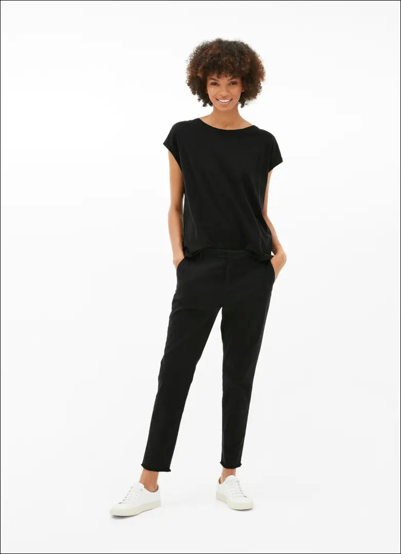 With a classic belted waist, back pockets and pressed pleats, these black chinos are a stylish all-rounder. The fringe on the leg cuffs accentuates the design and gives a modern finish. The tightly woven, stretchy cotton ensures that they are comfortable to wear; Tightly woven, stretchy cotton; Waistband with 5 loops for belts up to 4 cm; Hidden zipper; Side pockets; Back pockets; Machine wash at 30°C; https://www.juvia.com/de/de/juvia-regular-fit-chino-schwarz-8354-94 "Juvia"; The shipping packaging may not be original, the item is shipped fully or partially assembled; |