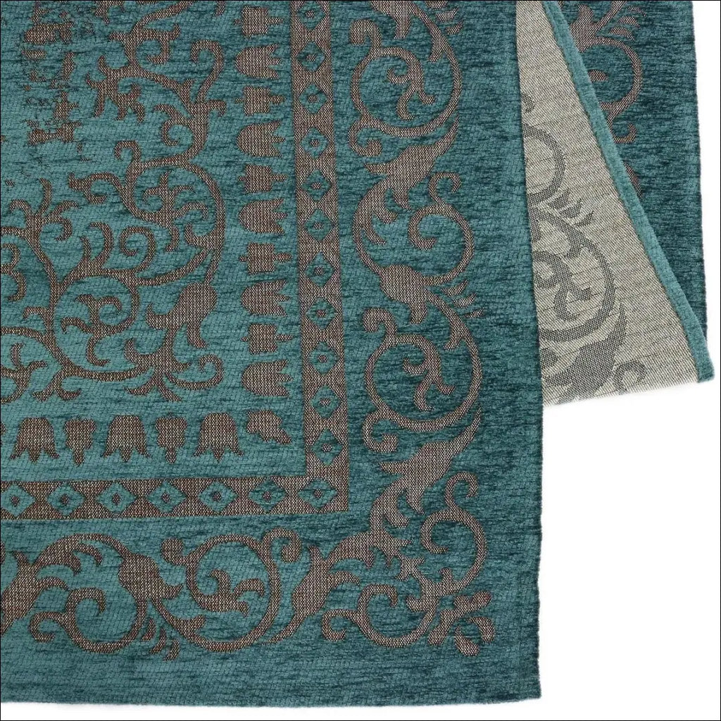 Šis gražus vintažinio dizaino kilimas, pasižymintis klasikiniu raštu ir turkio spalva, papildys bet kurį kambarį. Austas naudojant naujausias technologijas, jis yra labai plonas, tačiau minkštas. Jis yra antibakterinis, atsparus vandeniui ir nešvarumams, lengvai valomas. Akrilo, medvilnės ir poliesterio pluoštai yra patvarūs, tačiau neįtikėtinai minkšti po kojomis. Vintažinis lopšinis Marakesh kilimas yra sertifikuotas pagal „Oeko-Tex“ ir patikrintas dėl kenksmingų medžiagų. Tinka alergiškiems žmonėms ir grindiniam šildymui. |