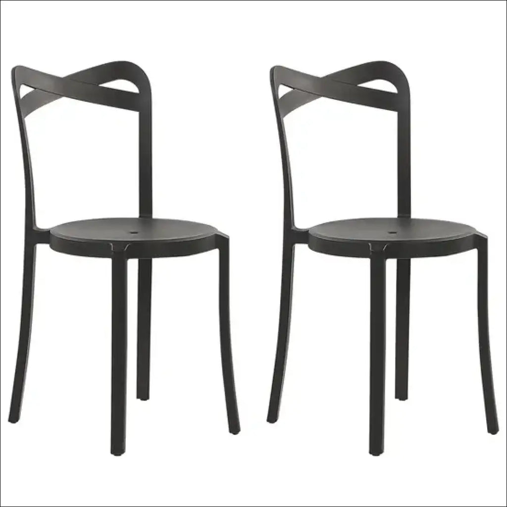Nepretenzingas dizainas su dekoratyviniu atlošu tinka tiek moderniam valgomajam, tiek balkonui ar terasai. Dėl atsparumo vandeniui ir mažų skylučių sėdynėje kėdes galite palikti lauke ir nesijaudinti dėl drėgmės. Jas galima sukrauti, kad žiemą būtų lengva laikyti; Galima apkrova - 120 kg; “Beliani”; Siuntimo pakuotė gali būti ne originali, prekė siunčiama pilnai arba dalinai surinkta; |