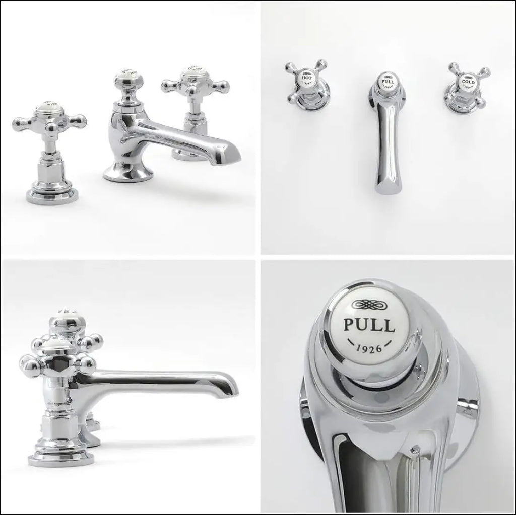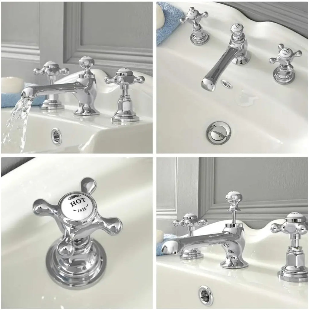 Premium quality lead-free solid brass construction with chrome finish and ceramic disc technology to prevent leaks and drips; Independent hot and cold water control; Compatible with all types of plumbing systems; Includes waste bin with pull rod mechanism; Designed with beauty and quality in mind; The classic handles feature ceramic quarter-turn cartridges for easy use and a long-lasting, leak-proof faucet; Ergonomic handles; "Milan" |