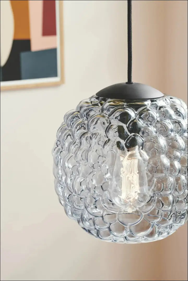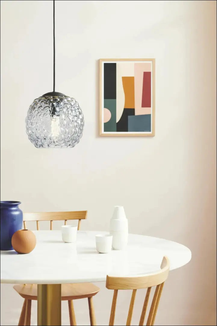 Glass pendant lamp "Halo Design" Light source: 1 x E27, max. 40 W (bulb not included); Dimmable with a suitable regulator and light source; In order to protect the environment and guarantee the best energy efficiency, it is recommended to use LED light sources; Adjustable height; Handmade; Original shipping packaging. |