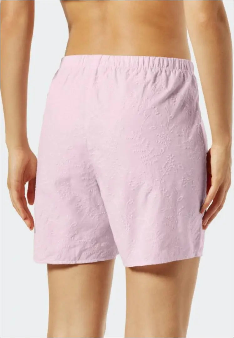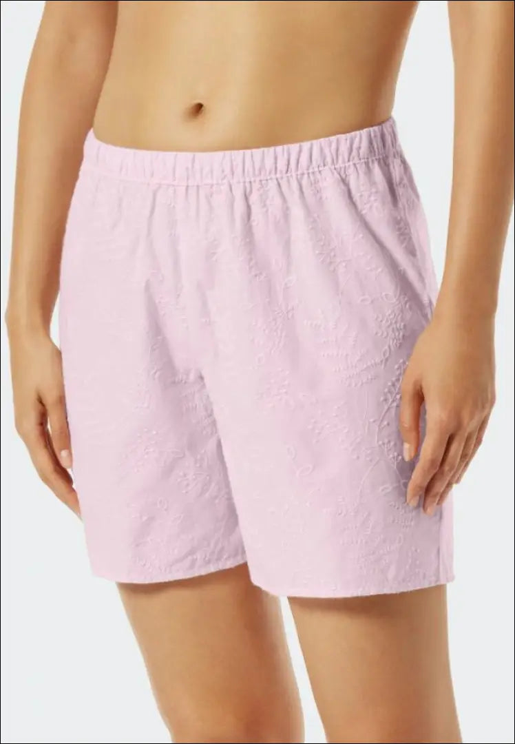 These women's shorts from the famous Mix + Relax collection are a woman's summer dream! The delicate floral embroidery makes them simply stunning! The material emphasizes the sophisticated look: the fabrics, woven from 100% pure cotton, feel great on the skin. The elastic waistband also ensures comfort; Highest SCHIESSER quality; With floral embroidery; Elastic waist; "SHIESSER"; |
