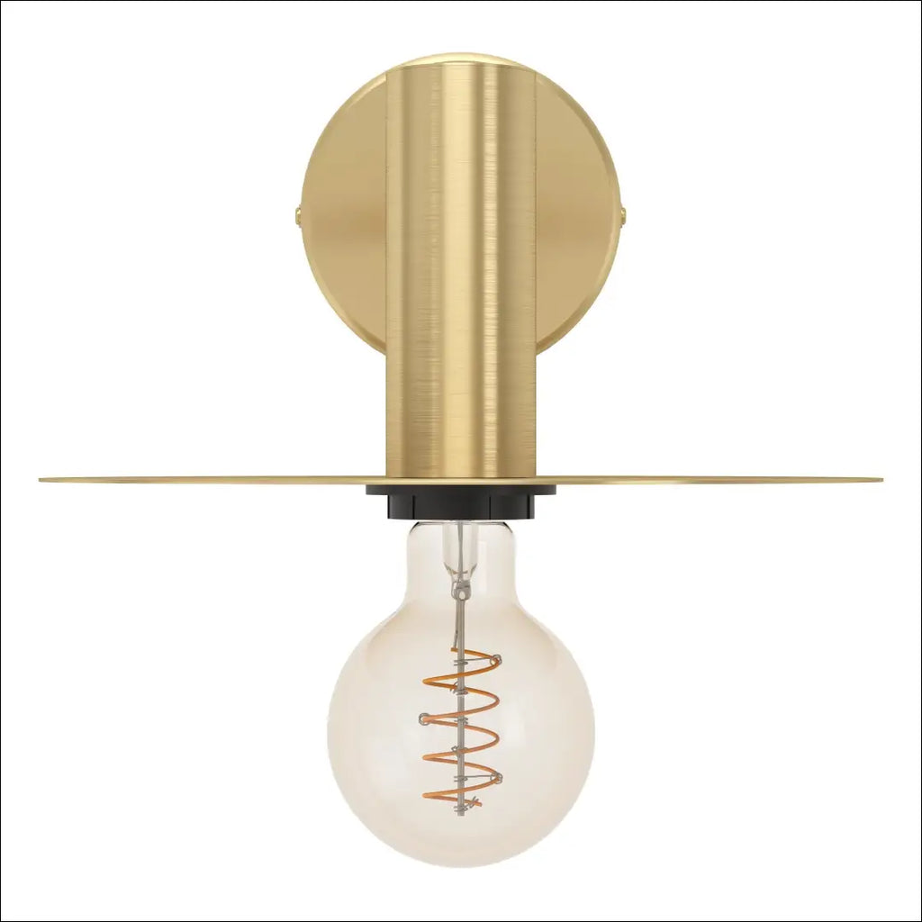 | Additional information | The ESCANDELL wall lamp features a round metal disc made of brushed brass, positioned above the lamp holder and showcasing an open bulb design attached to a wall holder of the same color. The wall lamp elegantly blends into minimalist New Retro interior styles and provides contemporary lighting for your room, whether in the living room, bedroom, hallway or dining room; 40W, E27 (bulb not included); “EGLO”; The shipping packaging may not be original, the item is shipped fully or partially assembled; |