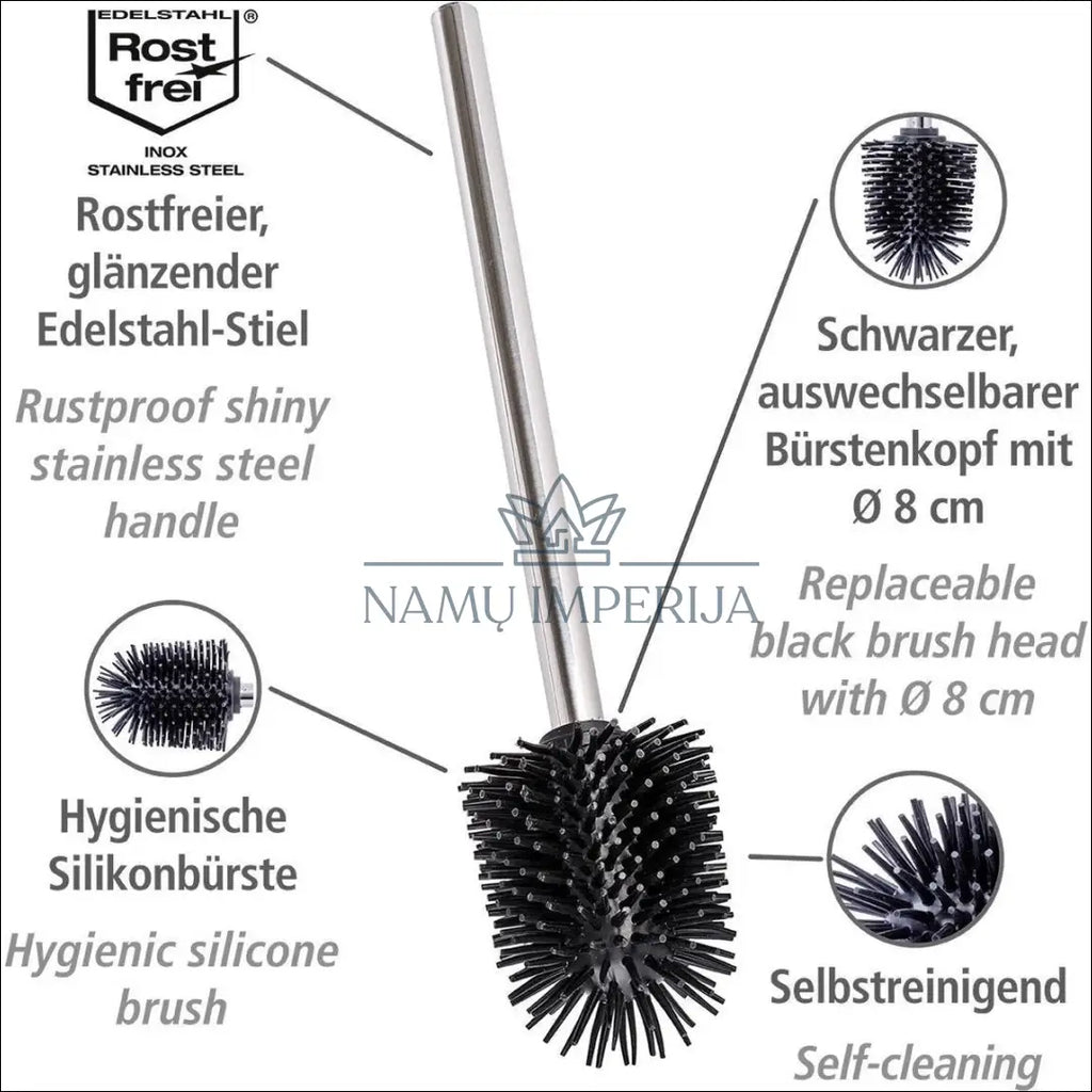 Aukštos kokybės pakaitinis tualetinis šepetys su nerūdijančio plieno rankena ir poliruota apdaila; “Wenko”; Siuntimo pakuotė gali būti ne originali, prekė siunčiama pilnai arba dalinai surinkta; |