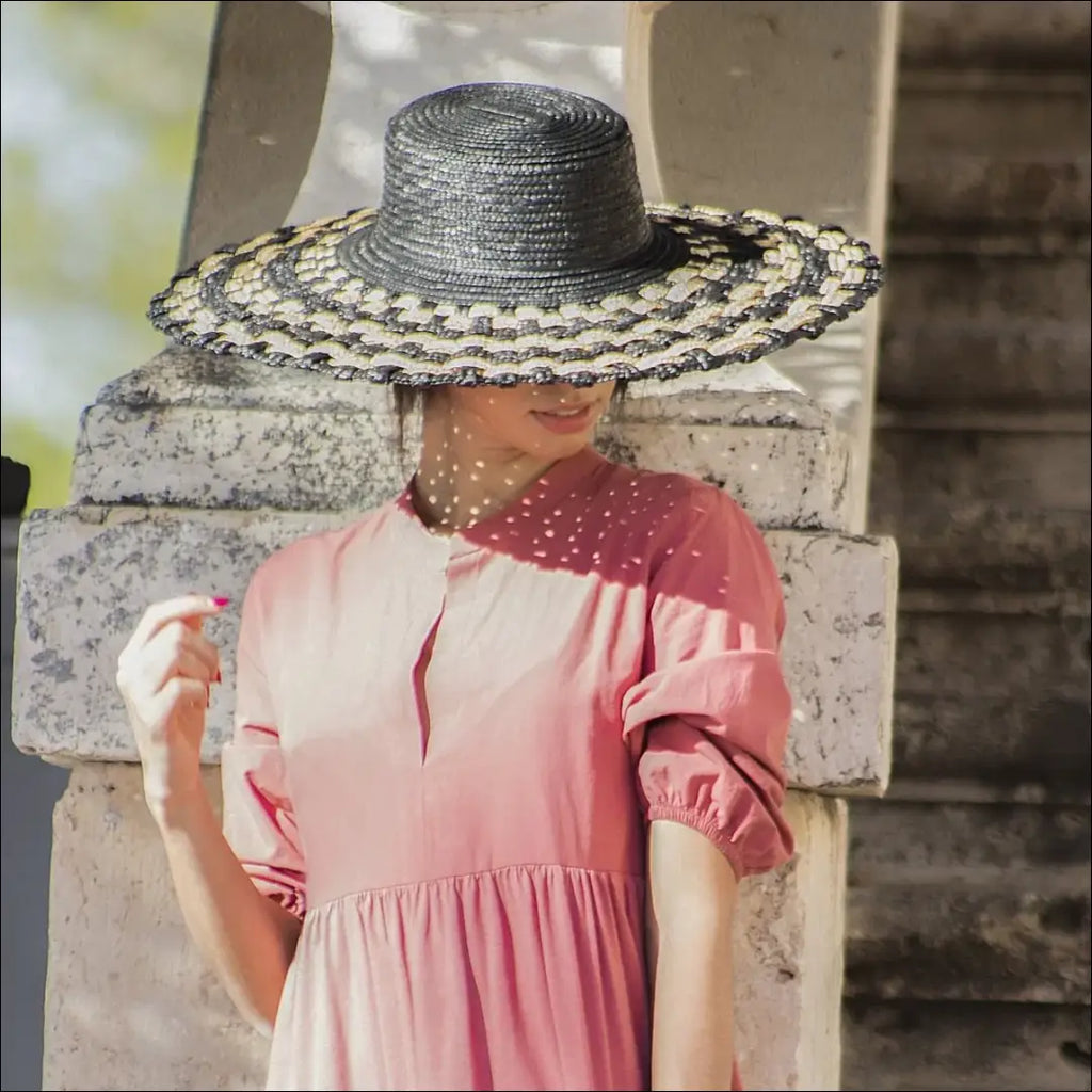The Tris-Tras straw hat has a striking design on the woven straw brim. Its maxi brim features a natural-colored woven straw pattern that will add discretion and originality to your look; The inner size is adjustable with laces; "Zahati"; The shipping packaging may not be original, the item may be shipped fully or partially assembled; |