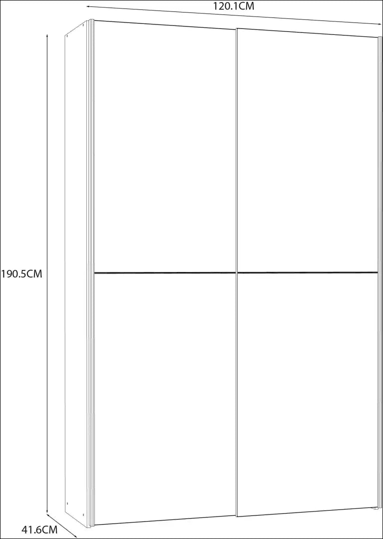 190,5 cm aukštis x 120,1 cm plotis x 41,6 cm gylis |