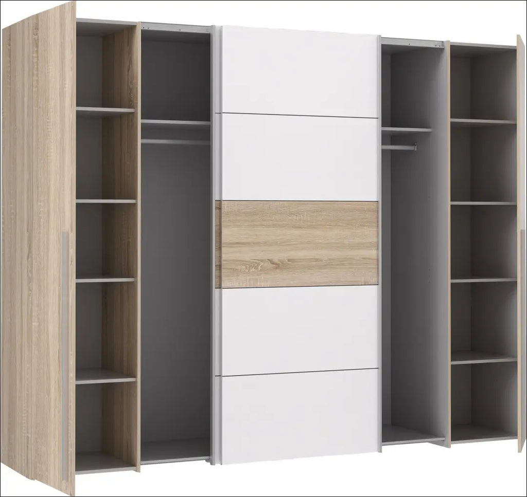 Varstomos ir stumdomos durys kartu su daugybe, iš dalies įvairiai panaudojamų lentynų suteikia daug vietos daiktams susidėti. Daiktų laikymo stebuklas su lengvai prižiūrima išvaizda: spinta žavi moderniu dizainu ir yra lengvai valoma. “Forte”; Siuntimo pakuotė gali būti ne originali, prekė siunčiama pilnai arba dalinai surinkta; |