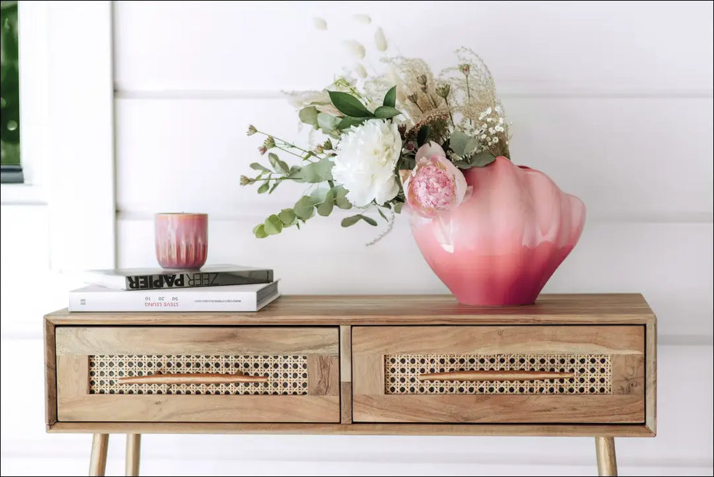 The Perlemor Coral Home Shell Vase is an unusual decorative offering from Villeroy & Boch, ideal for fans of Scandinavian accents. The ornament is made of porcelain with reactive glaze, in a beautiful coral color; You can use the vase in many ways - not just for flower arrangements. The shape of the shell and its interesting color effect make it a decoration in itself; Villeroy & Boch; The shipping packaging may not be original, the item is shipped fully or partially assembled; |