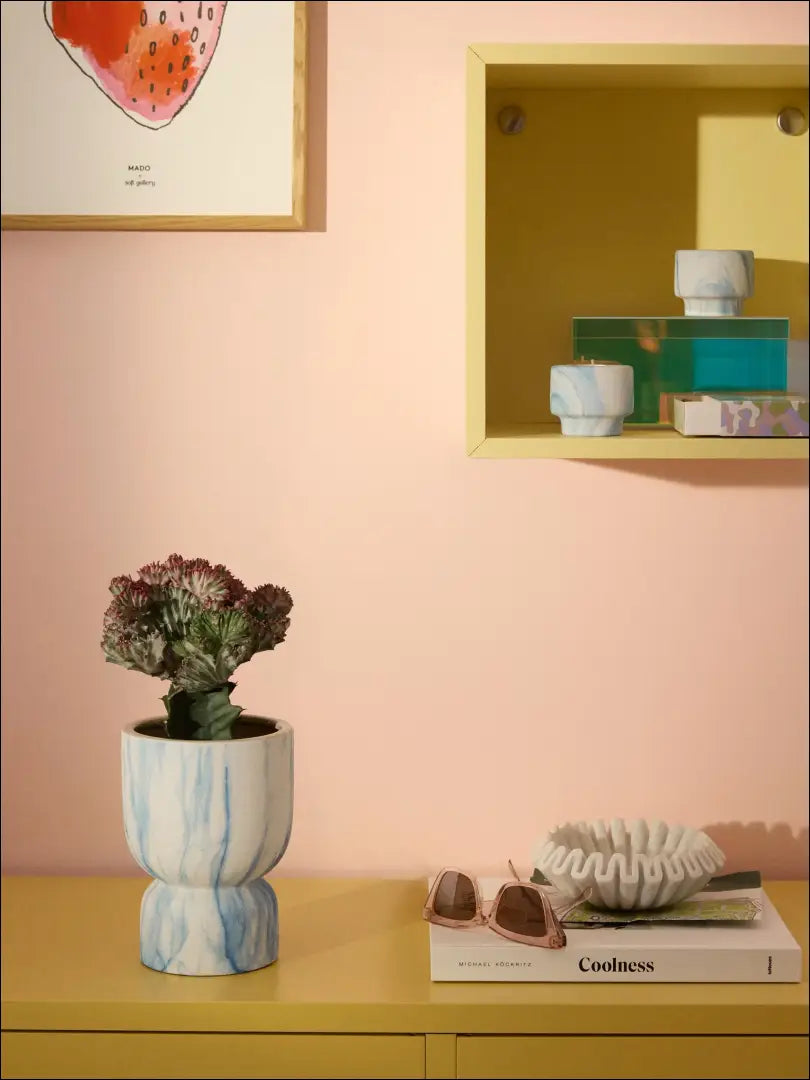 This collection features a unique marble glaze that creates a smooth geometric design. Made from durable stoneware, it combines clean lines with a modern touch, making each piece truly captivating! Since the pot does not have a drainage hole, it is recommended to use an inner pot for even watering.; The shipping packaging may not be original, the item is shipped fully or partially assembled; |