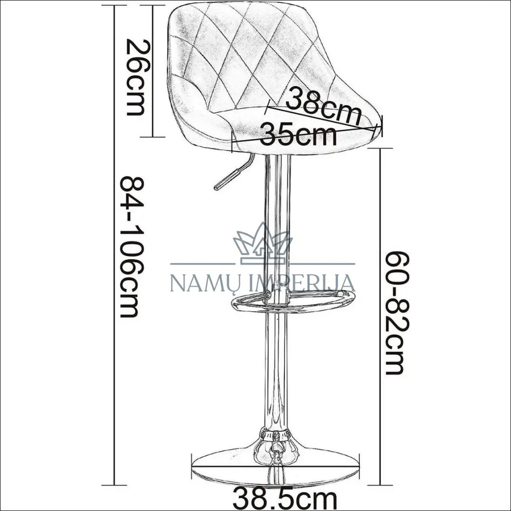 84 cm - 106 cm aukštis x 38,5 cm skersmuo Aukštis iki sėdimos dalies - 60 cm - 82 cm |