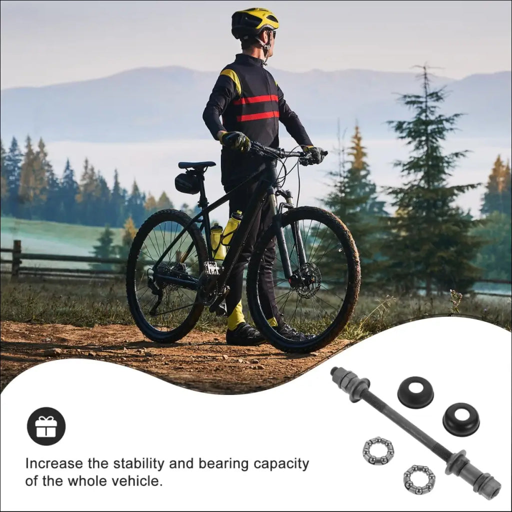 • Universalus ašies ilgis: tinka įvairiems kalnų dviračiams, ši ašis yra lengvai suderinama ir lengvai montuojama, priekiniai stebulės guoliai, priekinės stebulės ašies guoliai