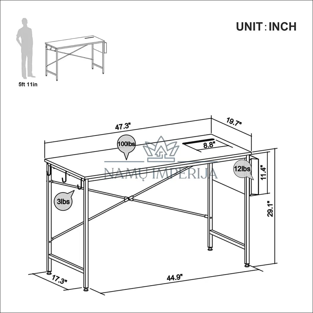 Papuoškite savo biurą paprastu, stilingu ir funkcionaliu rašomuoju stalu; Papildomas daiktų laikymo krepšys ir kabliukai efektyviai sutvarko biuro reikmenis, kad Jūsų darbo vieta būtų tvarkinga; Pagamintas su tvirtu metaliniu rėmu ir reguliuojamais kojų paminkštinimais, kad stalas būtų stabilus; Integruotas „iPad“ lizdas (8,8 colio) patogiai talpina „iPad“, planšetinį kompiuterį, išmanųjį telefoną; Aukštos kokybės inžinerinės medienos paviršius natūraliai papildo gyvenamąją erdvę; Lengva surinkti su aiškiomis montavimo instrukcijomis ir gerai išdėstytais priedais; “Blue Elephant”; Siuntimo pakuotė gali būti ne originali, prekė siunčiama nesurinkta. |