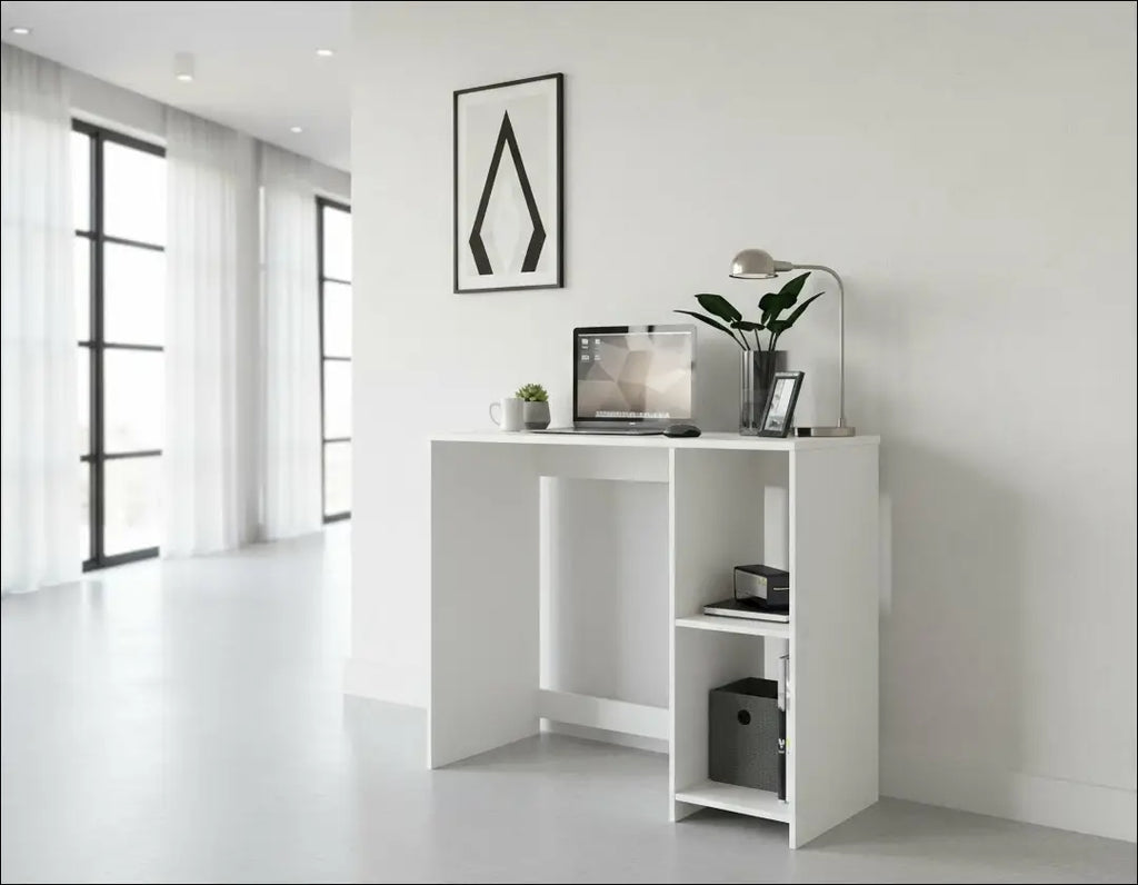 Nesenstančio dizaino kompiuterio stalas puikiai dera prie įvairių interjero stilių. Stalas su lentynomis ir dviem atvirais skyriais, kuriuose yra daug vietos daiktams susidėti; “ModernMoments”; Siuntimo pakuotė gali būti ne originali, prekė siunčiama pilnai arba dalinai surinkta; |