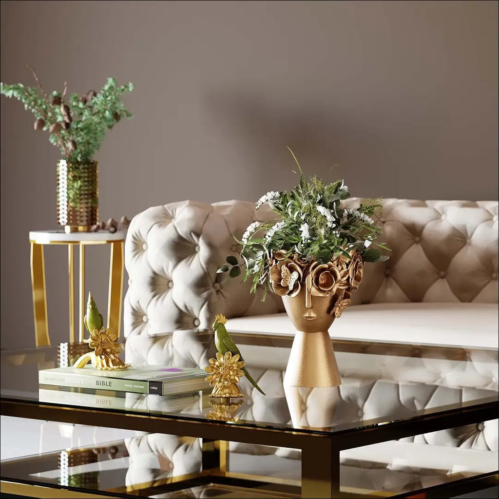 Ši vaza palieka daug erdvės vaizduotei: veidas paslaptingai paslėptas už gėlių vainiko ir pritraukia visų dėmesį dar prieš pridedant gėlių ar augalų. Dekoratyvinė vaza pagaminta iš sintetinio akmens, todėl nėra atspari vandeniui, tačiau idealiai tinka dirbtiniams augalams arba kaip vieta raktams; „Kare Design”; Siuntimo pakuotė gali būti ne originali, prekė siunčiama pilnai arba dalinai surinkta; |
