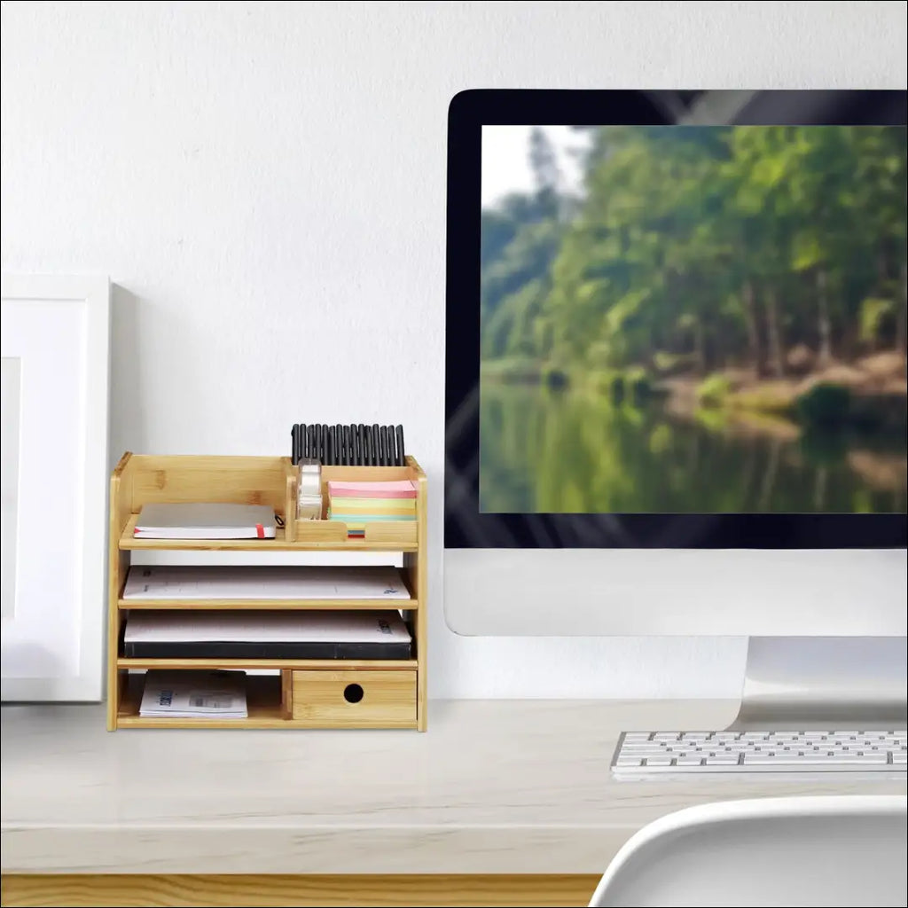 Dokumentų stovas; Laiškų organizatorius; Tvarkingai laikykite raštinės reikmenis;; Natūralus bambukas Sutelktam darbui; “Relaxdays”; Siuntimo pakuotė gali būti ne originali, prekė siunčiama pilnai arba dalinai surinkta; |