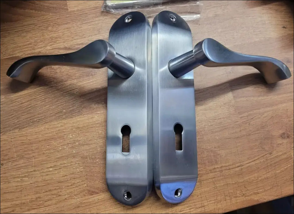 plokštės matmenys 183 x 42 mm.; Svirties ilgis 115 mm . Bendras išsikišimas 57 mm. Galinės plokštės storis 11 mm. |