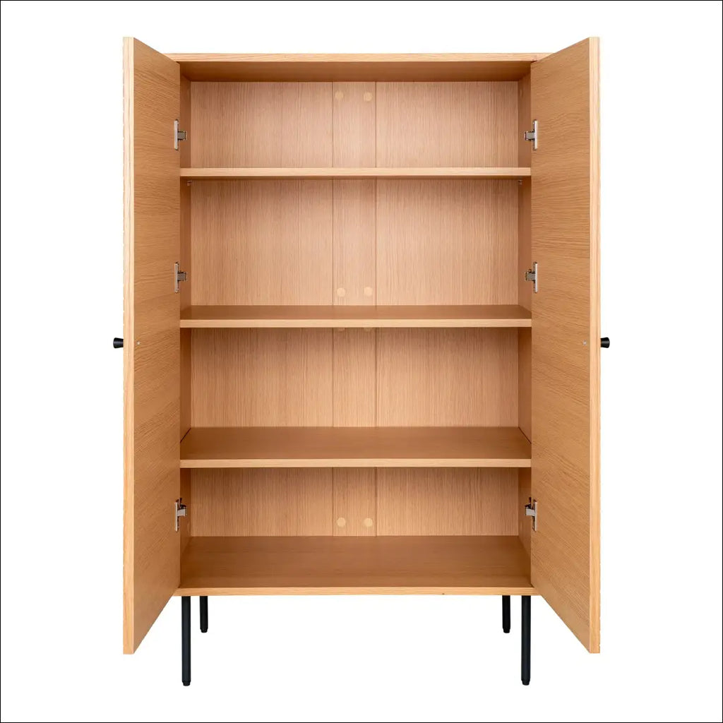 Komoda su 2 durelėmis, ąžuolo fanera, natūralios spalvos, juodo metalo kojelės, 80x40x130 cm RD506