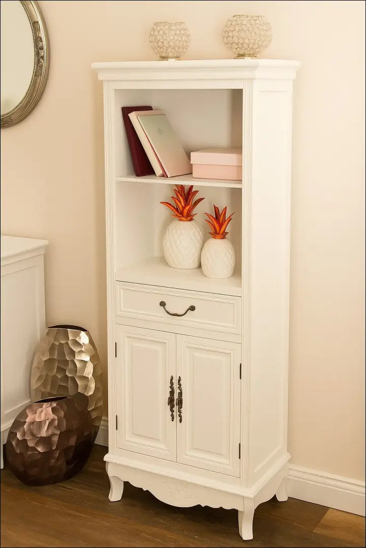 Universali, dekoratyvi ir tikra daiktų laikymo paslaptis: romantiško kaimiško stiliaus komoda „Elegance“ įkūnija visas šias savybes. Vizualiai spintelė žavi gražiai apipavidalintais fasadais ir rožių motyvais. Išlenktos formos, arkinės kojelės ir žiedinės rankenos – tai kiti jos dizaino elementai. Be įspūdingos išvaizdos, ši aukšta komoda siūlo daug vietos daiktams susidėti: už durelių ir stalčiuje galite laikyti asmeninius daiktus. Komodoje taip pat yra lentyna. Šį baldą galima naudoti svetainėje, darbo kambaryje ar net kaimiško stiliaus virtuvėje. Romantiško kaimiško stiliaus komoda „Elegance“ taip pat idealiai tinka mažesnėms erdvėms; Vidutinio aukščio komodos ir lentynos derinys; Stalčius, dvi lentynos ir dvi durelės; Dekoratyvinė metalinė durų furnitūra ir judanti rankena; Stalčiai su panelėmis dengtais fasadais, durelės su magnetiniais užsegimais; “My Flaire Elegance”; Siuntimo pakuotė gali būti ne originali, prekė siunčiama pilnai arba dalinai surinkta; |