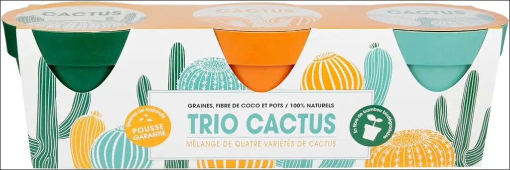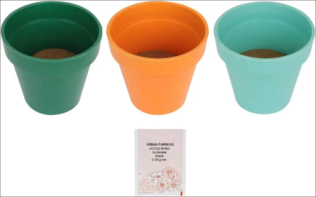 Trijų žingsnių kaktusų receptas. Pasodinkite, laistykite ir laukite… Štai ir viskas; 3 biologiškai skaidūs vazonai, pagaminti iš organinio bambuko pluošto; Kaktuso sėklos (olandų kilmės); 4 veislių kaktusų mišinys; Kokoso pluošto tabletės; Pridedamos instrukcijos; “La chaise longue”; Siuntimo pakuotė gali būti ne originali, prekė siunčiama pilnai arba dalinai surinkta. |