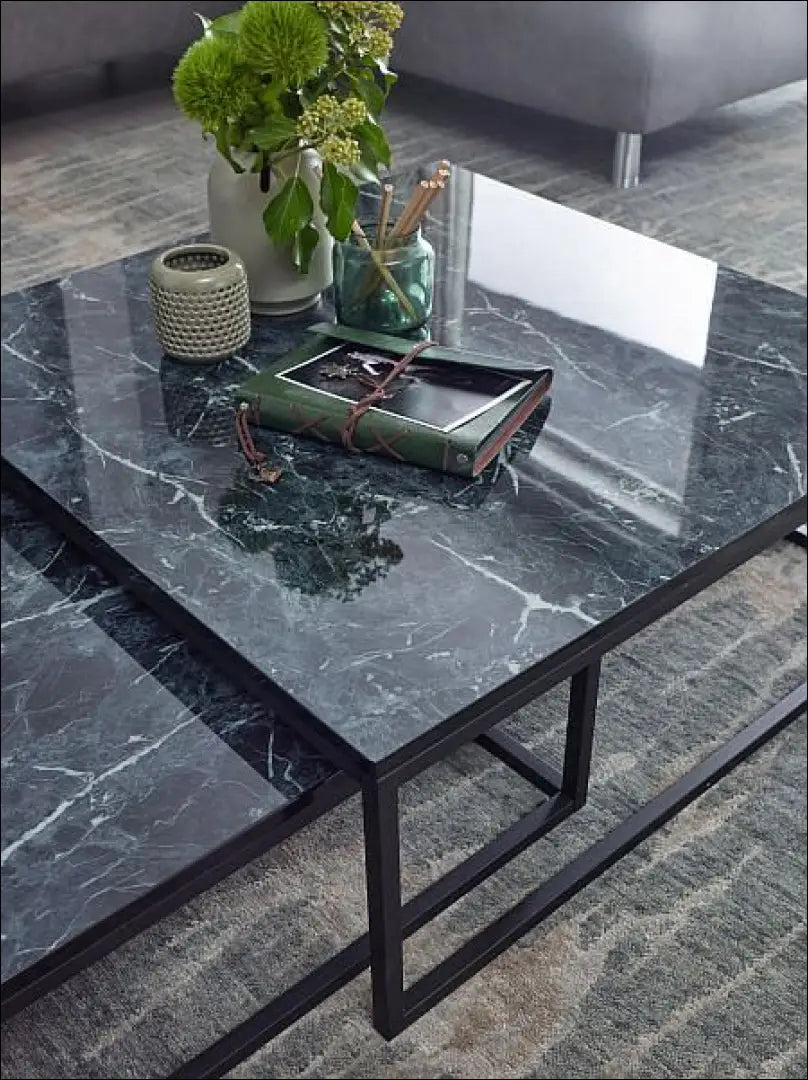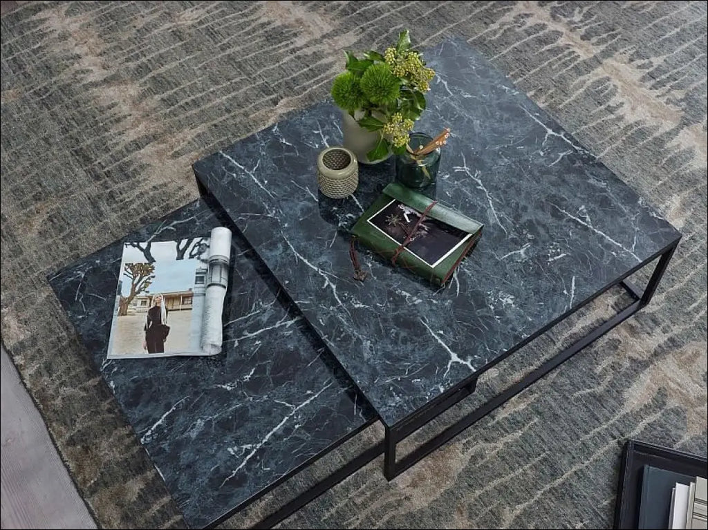 Šis dviejų dalių komplektas, pasižymintis ypatingu žavesiu, magiškai įkvėps jūsų svetainei žavesio. Jus džiugins elegantiški rėmai ir marmuro imitacijos stalviršiai. Išskirtinio dizaino sustatomi stalai; „Wohnling Design“; Siuntimo pakuotė gali būti ne originali, prekė siunčiama pilnai arba dalinai surinkta; |