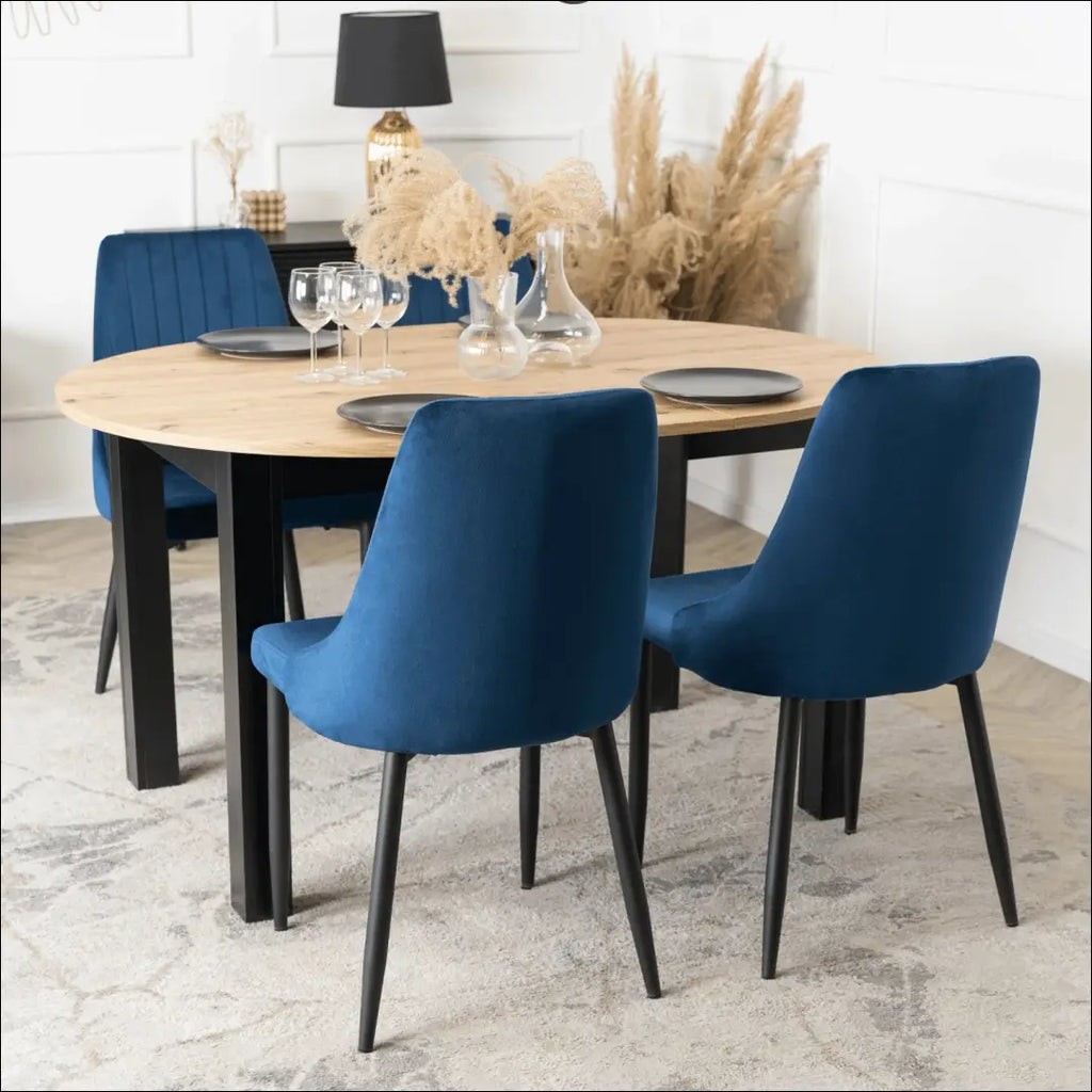 Medžiaga - Veliūras, Spalva - Navy Blue, Porankiai - Ne, Stilius - Modern | Loftas, Corpse spallva - juoda, Korpuso medžiaga - plienas, Maksimali apkrova - 110 kg, Sėdynės plotis - 48 cm, Sėdynės gylis - 44 cm, Sėdynės aukštis - 48 cm, Kėdės aukštis - 90 cm, Kėdės plotis - 50 cm, Kėdės gylis - 50 cm