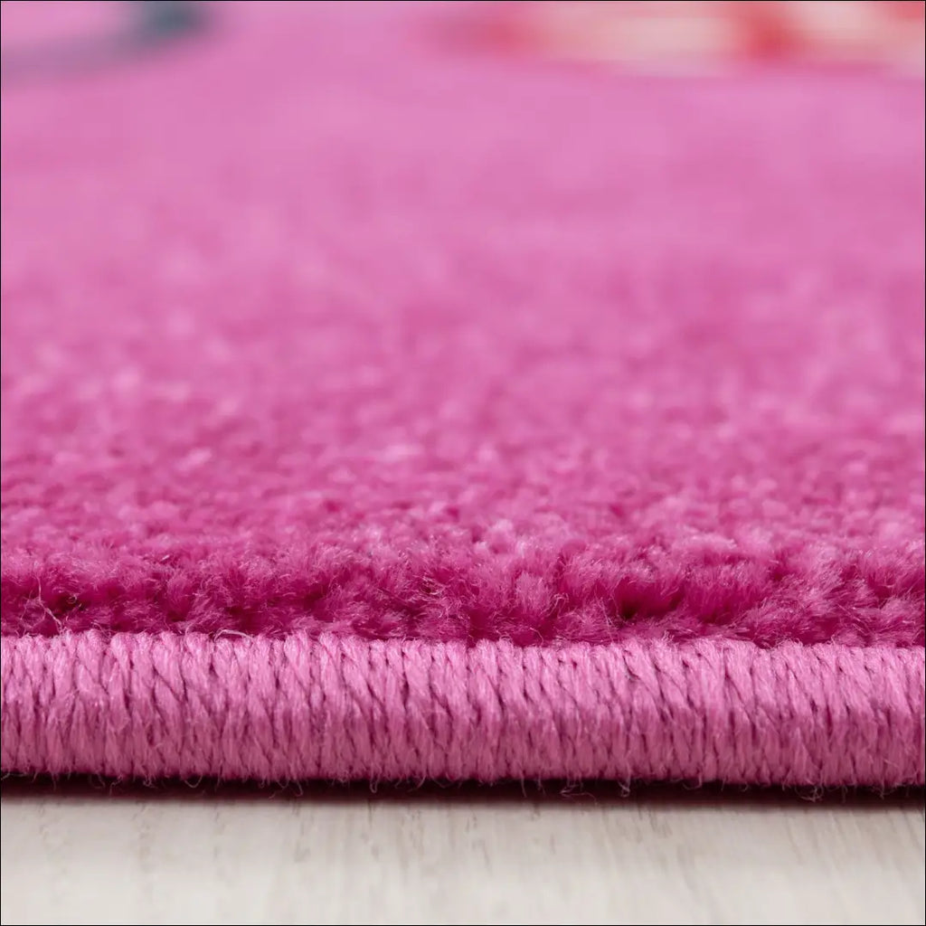 - Spalva: Ryški rožinė spalva su margomis detalėmis suteikia kilimui išskirtinį žavesį.