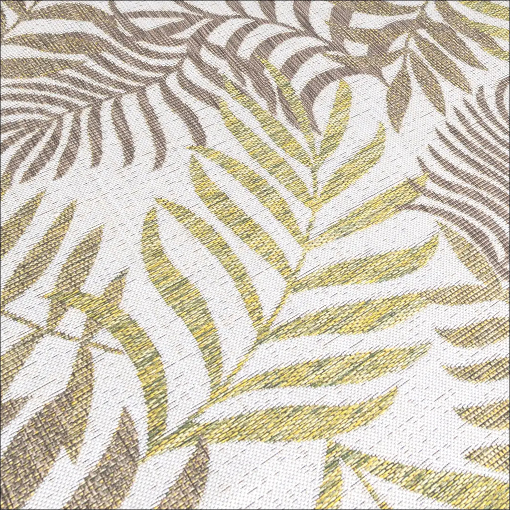 Lauko/terasos kilimas, Palmių dizainas, Pagrindinė spalva: smėlio, Kilimas gali būti naudojamas terasoje, balkone, Apatinės medžiagos sudėtis - Polipropilenas, Įvairūs dydžiai