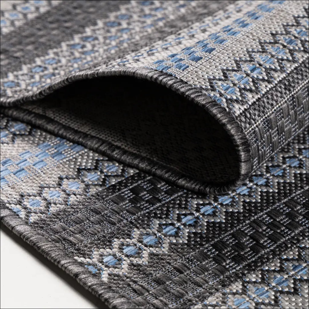 Lauko/terasos kilimas, vintažinis dizainas, Pagrindinė spalva: Pilka, mėlyna, Kilimas gali būti naudojamas terasoje, balkone, Apatinės medžiagos sudėtis - Polipropilenas, Įvairūs dydžiai