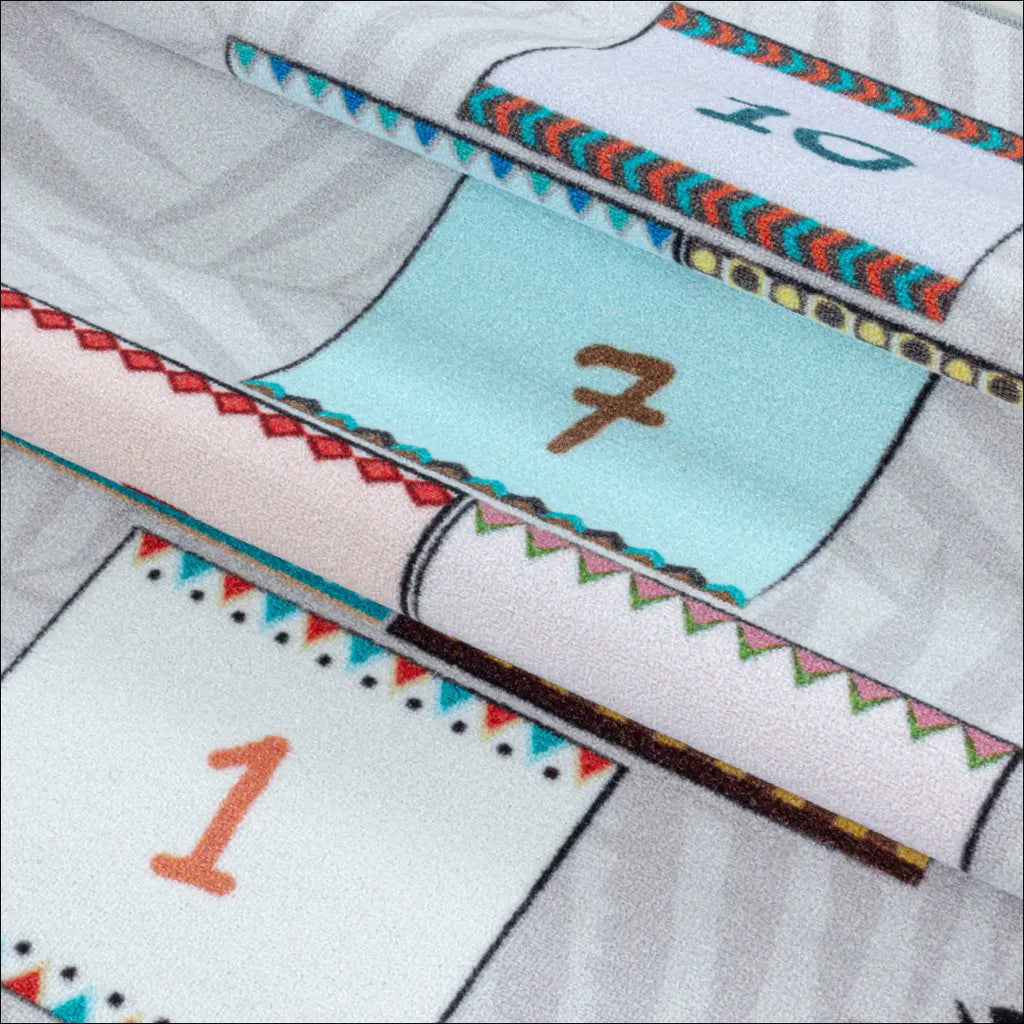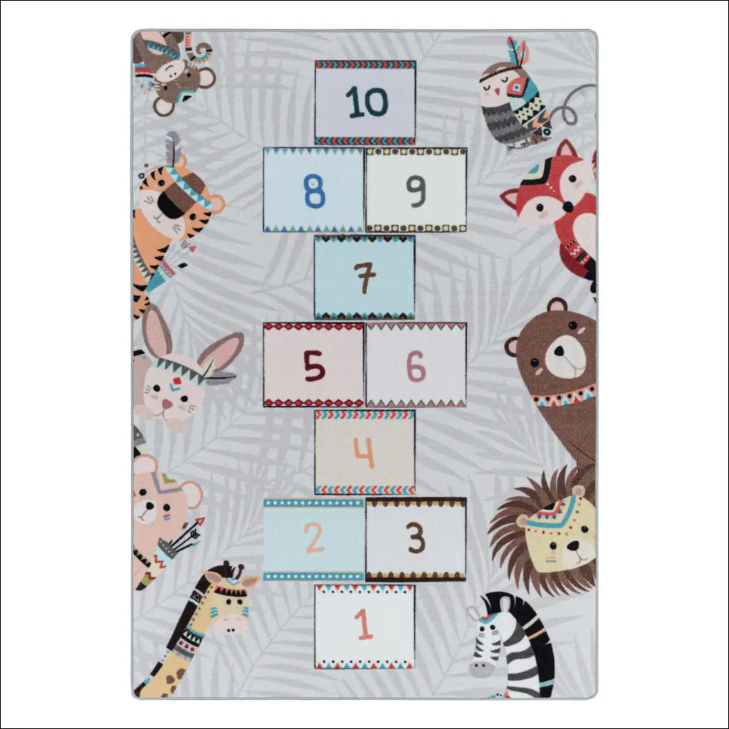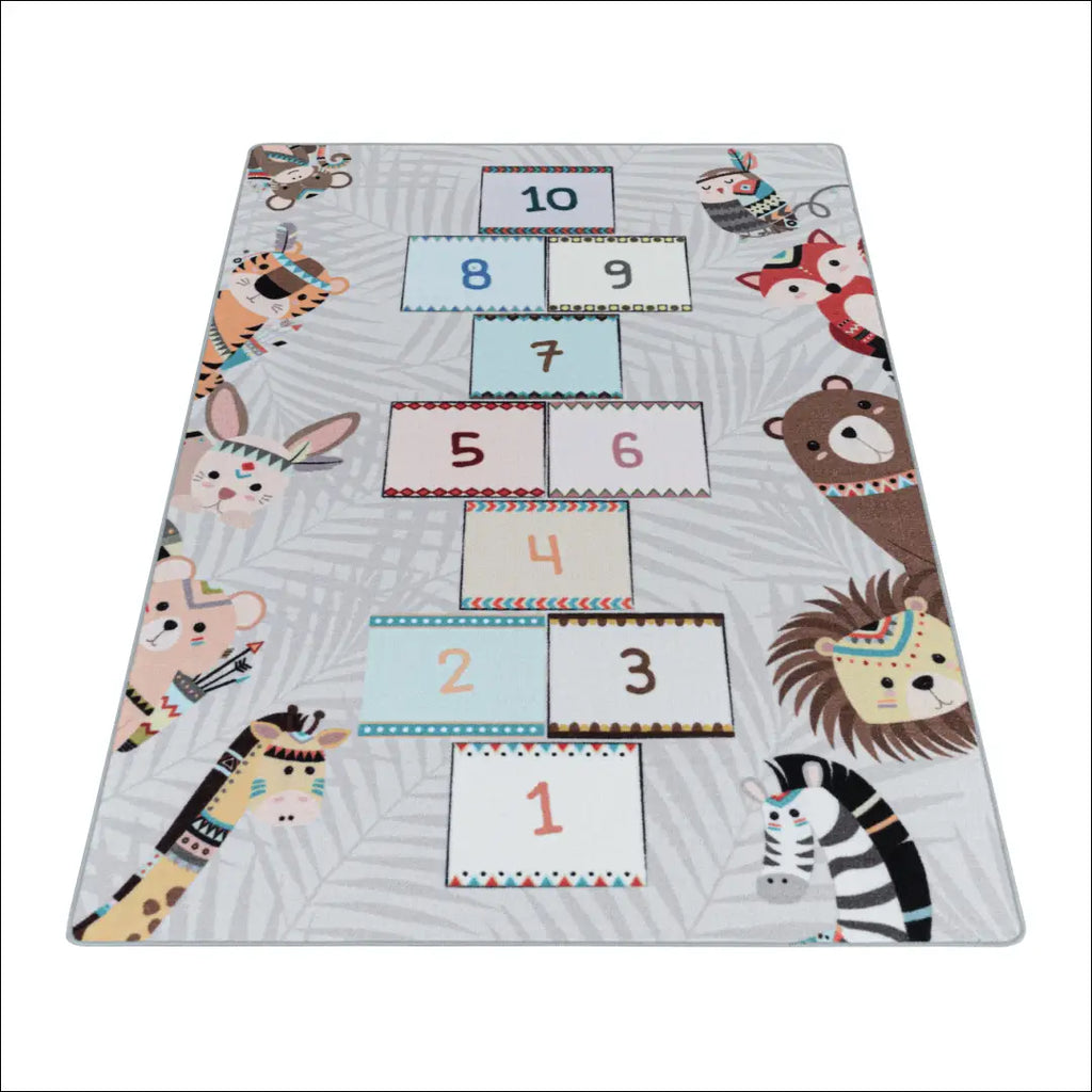 Vaikiškas kilimas, Žaidimas - klasė, Pagrindinė palva - pilka, Kilimas vaikų kambariui, Apatinės medžiagos sudėtis - lateksas, Įvairių dydžių