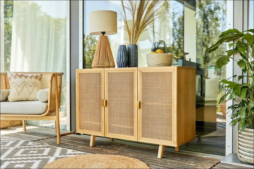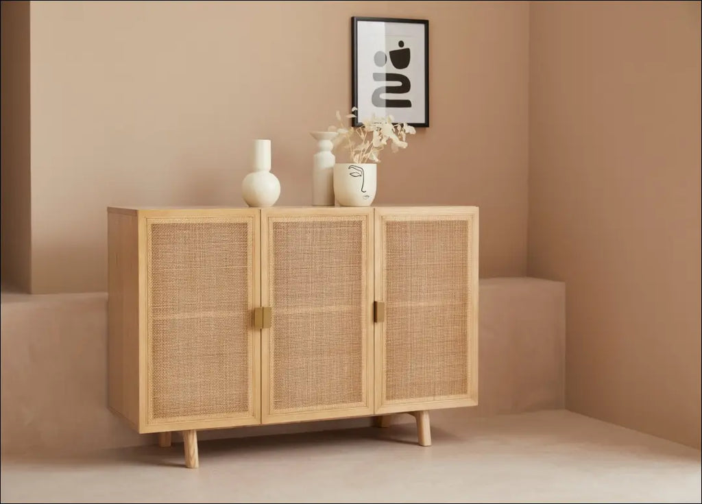 Aukštos kokybės apdaila: iš medžio masyvo ir rotango pynimo pagaminta indauja yra patrauklios išvaizdos ir patvari, suteikdama šiltą ir natūralią išvaizdą. Šis baldas su trimis durelėmis ir daugybe erdvės viduje idealiai tinka indams, knygoms ar dekoratyviniams daiktams laikyti ir padeda palaikyti tvarką. Puikiai tinka svetainėms, koridoriams ar valgomiesiems, indauja harmoningai dera prie įvairių interjero stilių ir suteikia stilingų akcentų bet kuriam kambariui. “Leger”; Siuntimo pakuotė gali būti ne originali, prekė siunčiama pilnai arba dalinai surinkta; |