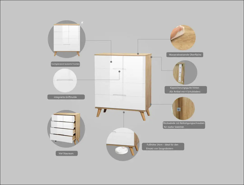 Nesenstantis skandinaviškas dizainas: minimalistinis stilius su švariomis linijomis, harmoningai įsiliejantis į bet kurį miegamąjį. Praktiškas daiktų laikymas: keturi erdvūs stalčiai suteikia daug vietos jūsų asmeniniams daiktams susidėti ir palaiko tvarką. Blizgūs lakuoti fasadai: blizgūs fasadai suteikia komodai modernų ir elegantišką vaizdą. FSC® sertifikuota medienos medžiaga; “Brayden Studio”; Siuntimo pakuotė gali būti ne originali, prekė siunčiama pilnai arba dalinai surinkta; |