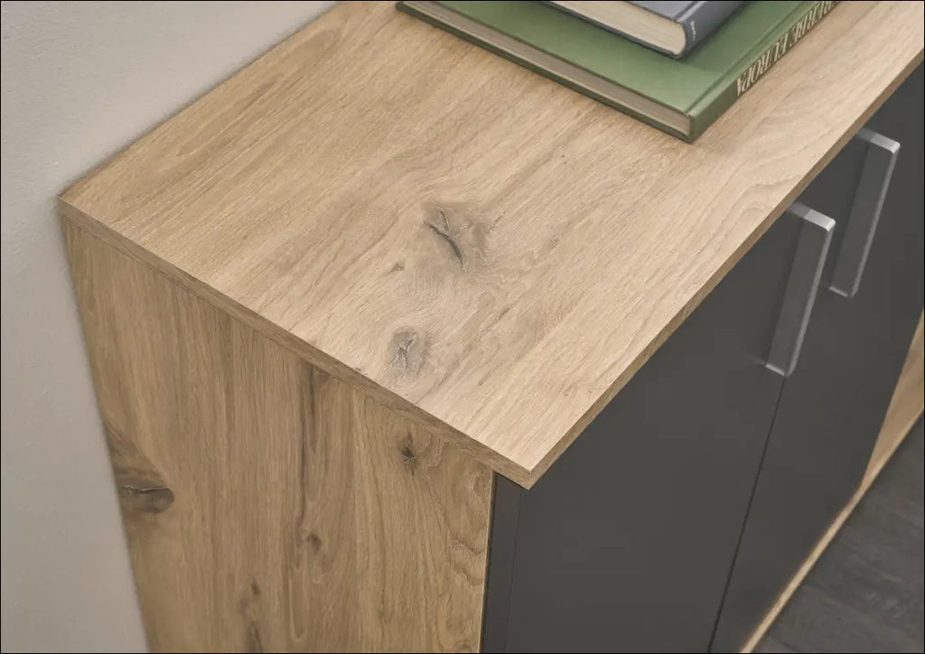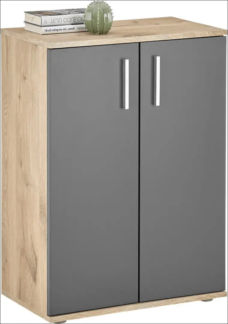 Šiuolaikinio spalvų derinio komoda, universali savo paskirtimi; Spintelė su 2 durelėmis ir 1 reguliuojamo aukščio lentyna; “HBZ”; Siuntimo pakuotė gali būti ne originali, prekė siunčiama pilnai arba dalinai surinkta; |