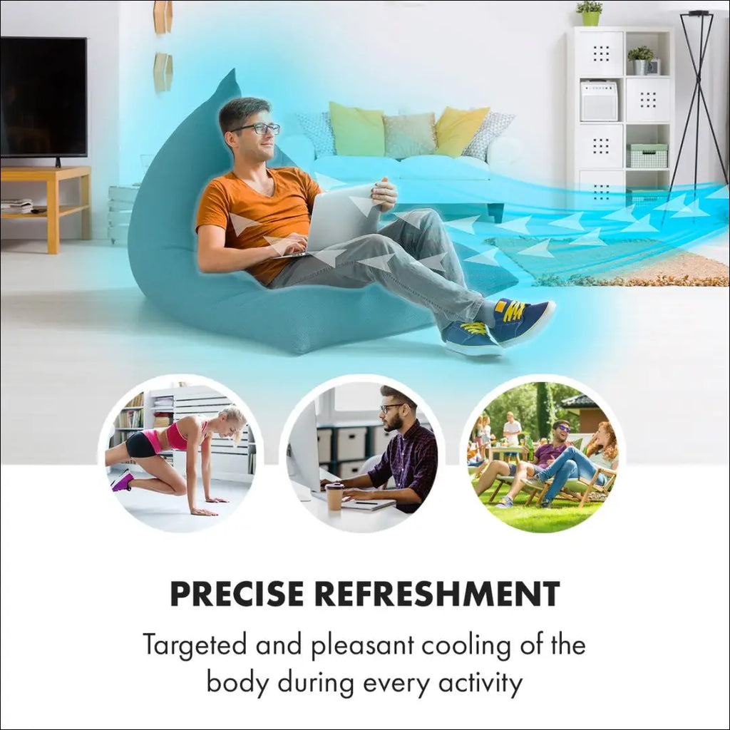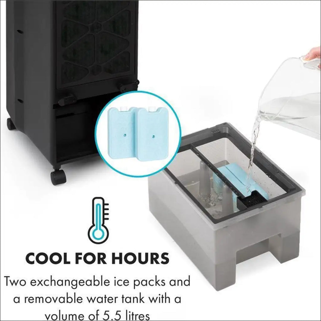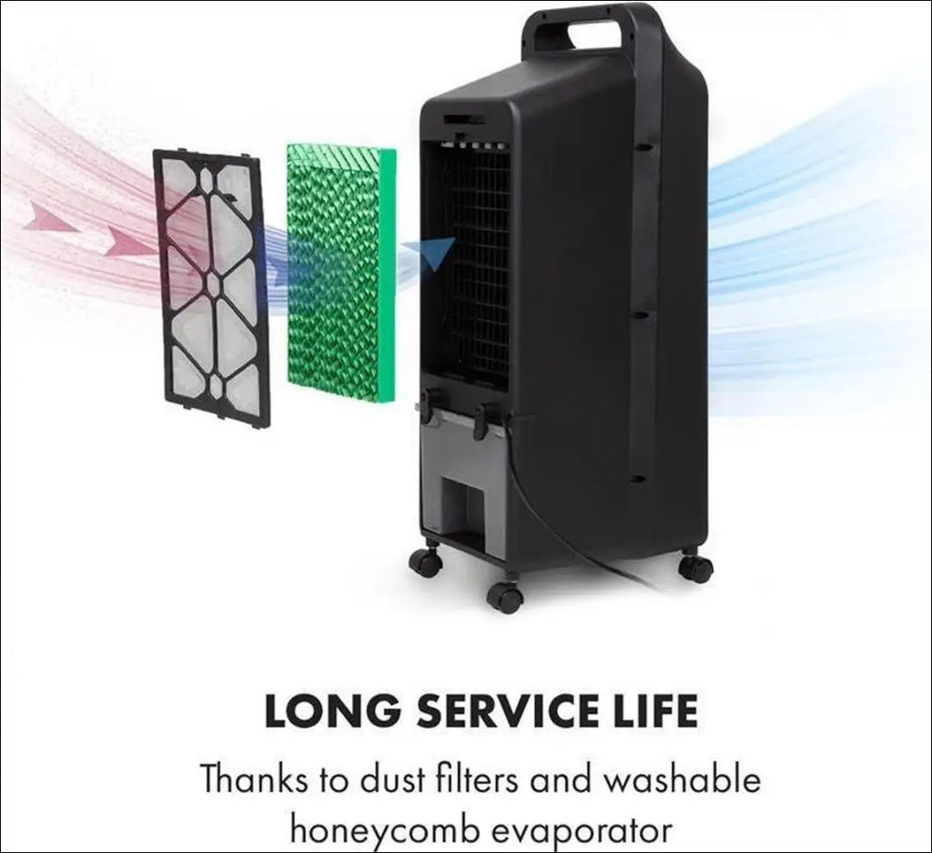 Maksimalus gaivumas! „Klarstein Cooler Rush 3-in-1“ oro aušintuvas karštomis vasaros dienomis jus atvėsins kaip tik laiku. Veikdamas kaip ventiliatorius, oro aušintuvas ir drėkintuvas, jis užtikrina gaivų oro srautą ir vėsų galvos jausmą, kad ir kur būtumėte. Ypač efektyvus vėsinimui: su „Klarstein Cooler Rush 3-in-1“ oro aušintuvu galite lengvai reguliuoti oro srautą pagal savo poreikius naudodami valdymo skydelį arba nuotolinio valdymo pultą. Trys ventiliatoriaus greičiai, perjungiama horizontalios svyravimo funkcija ir laikmatis, reguliuojamas iki 8 valandų, leidžia tiksliai reguliuoti vėsinimo poreikius. Be įprasto režimo, gamtos režimas imituoja kylantį ir silpnėjantį vėją. Naktinis režimas veikia panašiu principu, tačiau palaipsniui mažina maksimalų ventiliatoriaus greitį, kol galiausiai įrenginys išsijungia . Kartu su oro aušintuvo funkcija vėsinimo efektas dar labiau sustiprinamas. Aplinkos oras vėsinamas natūraliu vandens garavimo principu: 3 viename oro aušintuvas įtraukia šiltą orą iš įrenginio galo ir jį drėkina. Dėl natūralaus garavimo ir išeinančio oro srauto oras tampa vėsesnis. Tai laiku suteikia kūnui gaivumo bet kokios veiklos metu. Be to, oras praturtinamas malonia drėgme, kuri suteikia palengvėjimą, ypač karštomis, sausomis dienomis arba žiemą, kai šildomas sausai. Siekiant ilgesnio tarnavimo laiko, bake telpa iki 5,5 litro vandens. Dvi keičiamos vandens bako aušinimo ritės taip pat sumažina temperatūrą, kad būtų dar geriau vėsinama. Vandens baką galima visiškai nuimti, kad būtų lengva jį pripildyti, valyti ir ištuštinti. O sunaudodamas tik 45 vatus energijos, „Cooler Rush“ yra ekologiškiausia oro kondicionieriaus alternatyva, ypač kai jis naudojamas nuolat. „Klarstein Cooler Rush“ yra gaivinantis oro aušintuvas dėl sulankstomos rankenos ir integruotų ratukų, visiškai mobilus ir gali atlikti savo funkcijas visur, kur labiausiai reikia vėsaus vėjelio. 3 viename efektyvumas: ventiliatorius, oro aušintuvas ir drėkintuvas viename; Tikslinis vėsinimas: tikslinis ir malonus kūno vėsinimas kiekvienos veiklos metu; Vėjas iš visų kampų: horizontalus osciliavimas ir rankiniu būdu reguliuojamas vertikalus oro srautas; Gaiviai tylu: keturi vėjo greičiai, gamtos režimas ir miego režimas, kurių maksimalus garsumas yra 57 dB aukščiausiu nustatymu; Išmani aušinimo sistema: automatinis siurblio išsijungimas po ilgo naudojimo; Vėsina valandas: du keičiami aušinimo elementai ir nuimamas 5,5 litro vandens bakas; Intuityvus valdymas : per valdymo skydelį su LED ekranu arba patogiai per nuotolinio valdymo pultą; Ilgas tarnavimo laikas: dėka dulkių filtro ir plaunamos korio formos aušinimo membranos; Mobilus: lengva perkelti dėl integruotų ratukų; Savybės: Oro srautas: iki 132 m³/val. Maksimali įrašymo galia: 45 W Didžiausias triukšmo lygis: 56,3 dB Minimalus triukšmo lygis: 36 dB Veikimo režimai: įprastas, naktinis, gamtos režimas Gamtos režimas: oro kondicionavimas ir padidintas ventiliatoriaus greitis Naktinis režimas: vėdinimo greitis palaipsniui didėja ir mažėja, kol sustoja. Laikmatis: reguliuojamas 1/2/4/8 valandų 5,5 litro vandens bakas ilgesniam vėsinimui be papildymo Skaitmeninis ekranas su savaime suprantamais simboliais Valdymo skydelis su 6 mygtukais įrenginio viršuje Aušinimo elementai, skirti padidinti aušinimo našumą Reguliuojamos ventiliacijos grotelės Vandens lygio ekranas priekyje Keturi 360° ratukai lengvam padėčiai Nuotolinio valdymo pulto maitinimas: 1 x CR2032 baterija (pridedama) Maitinimo šaltinis: 220–240 V ~ | 50 Hz “Klarstein”; Siuntimo pakuotė gali būti ne originali, prekė siunčiama pilnai arba dalinai surinkta; |