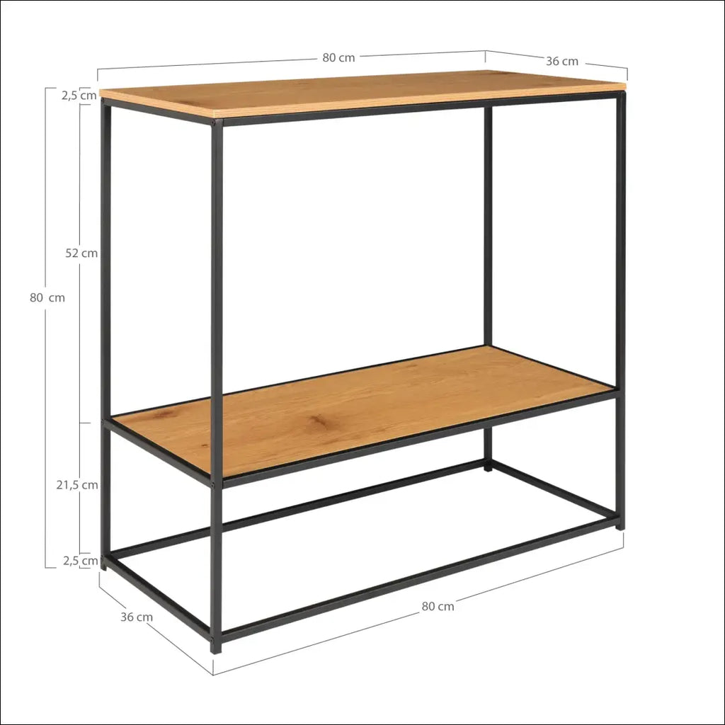 Konsolinis staliukas, 2 lentynos, ąžuolo imitacija, juodas rėmas, 80x36x80 cm RD457