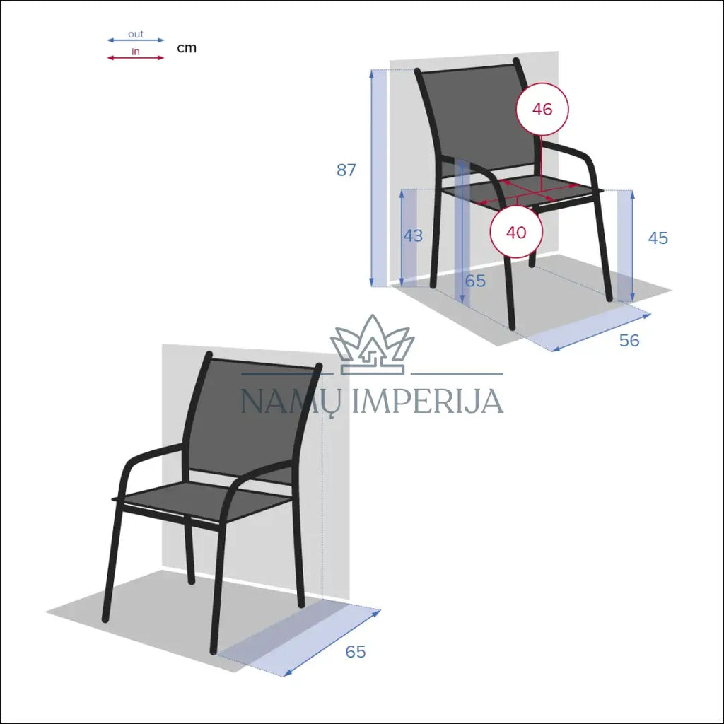87 cm aukštis x 56 cm plotis x 65 cm gylis Aukštis iki sėdimos dalies - 45 cm |