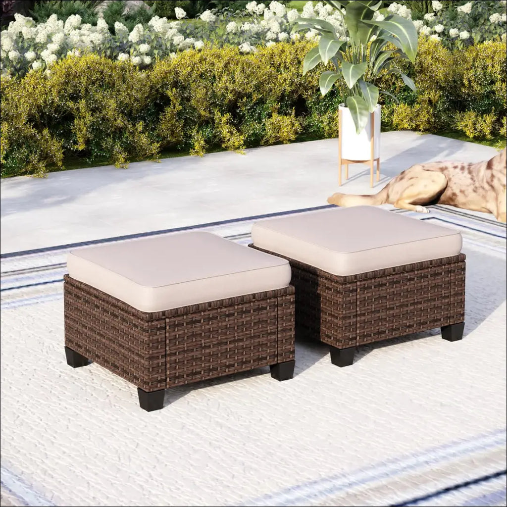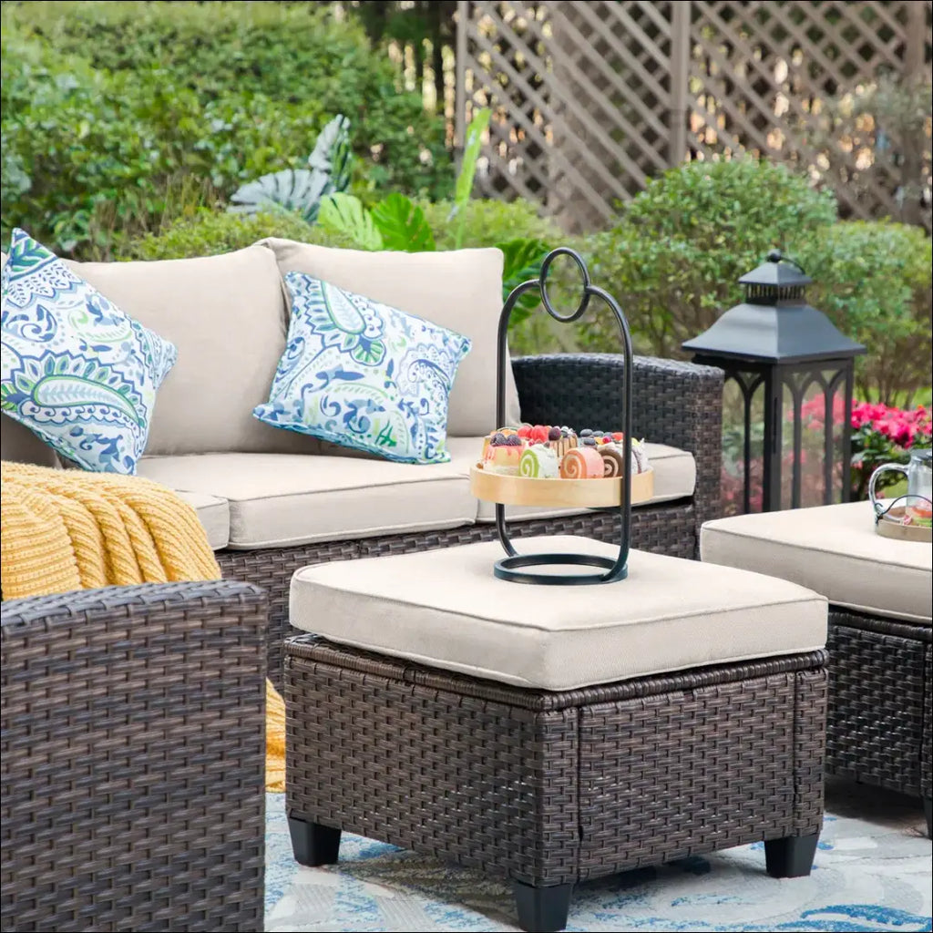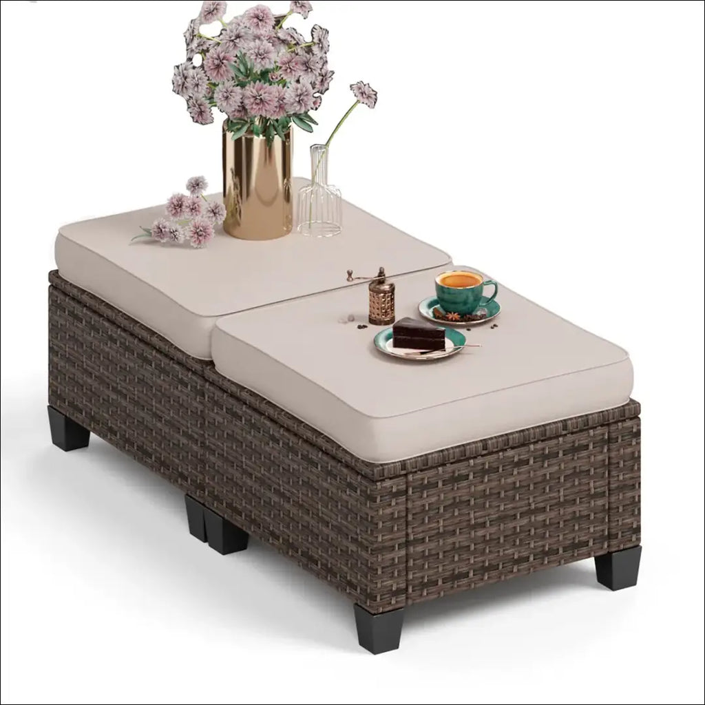 Paverskite savo lauko erdvę ramia oaze su lauko kiemo pintais rotango pufais. Šie stilingi ir funkcionalūs priedai derina patvarumą, komfortą ir eleganciją, todėl puikiai tiks jūsų terasoje, sode ar prie baseino; Skalbyklėje skalbiamas pagalvėlės užvalkalas; Atsparus UV spinduliams, atsparus oro sąlygoms, atsparus dėmėms, atsparus blukimui; “Premium Home Solution”; Siuntimo pakuotė gali būti ne originali, prekė siunčiama pilnai arba dalinai surinkta; |