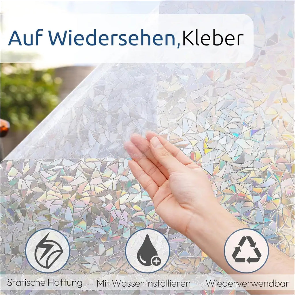 Lietaus spalvos efektas šviesoje: pati 3D langų plėvelė yra bespalvė ir neutralios spalvos. Dėl specialaus 3D lazerio dizaino ji spalvotą lietaus spalvos efektą rodo tik keičiantis lauko apšvietimui, kai saulės šviesa apšviečia plėvelę po jos montavimo. Užtikrina privatumą, tuo pačiu praleisdama šviesą. Privatumo lygis: 3 žvaigždutės. Konstrukcija keičiasi priklausomai nuo šviesos. Kai yra saulės šviesa, privatumo uždanga padidėja. Jei šviesos nėra, privatumas sumažėja. Todėl nerekomenduojama jos naudoti vonios kambaryje ar prie lango be šviesos. Be klijų: Beklijė ir aplinkai nekenksminga medžiaga, išvengiama cheminių medžiagų išsiskyrimo. Statiniai klijai, galima užklijuoti per kelias minutes. Apsauga nuo saulės ir senėjimo: žiemą palaiko šilumą viduje, o vasarą – vėsumą, sumažina šilumos perdavimą ir blokuoja 99 % UV spindulių, apsaugo jūsų odą nuo žalingos spinduliuotės ir sumažina baldų blukimą bei senėjimą. Lengvas pašalinimas: Nulupus nepalieka likučių. Šią 3D langų plėvelę galima pakartotinai naudoti tiek kartų, kiek norite, ją galite užklijuoti ir nuimti vėl ir vėl. “Dekorfun”; Siuntimo pakuotė gali būti ne originali, prekė siunčiama pilnai arba dalinai surinkta; |