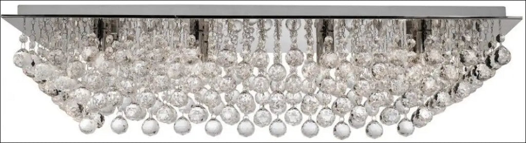 Šis stačiakampis „Hanna Chrome“ lubinis šviestuvas su skaidriais krištolo rutuliukais atrodo nuostabiai ant bet kokių lubų. Prabangus šviestuvas priglunda prie lubų ir turi aštuonias lempas, apsuptas prabangių krištolo apvadų ir rutuliukų. O elegantiška stačiakampė veidrodinė plokštelė užbaigia šio didelio, modernaus sietyno išvaizdą; Maksimali galia: 33 W; Lempų skaičius: 8, G9 (lemputės nepridedamos); IP apsaugos klasė: IP20; “Searchlight”; Siuntimo pakuotė gali būti ne originali, prekė siunčiama pilnai arba dalinai surinkta; |