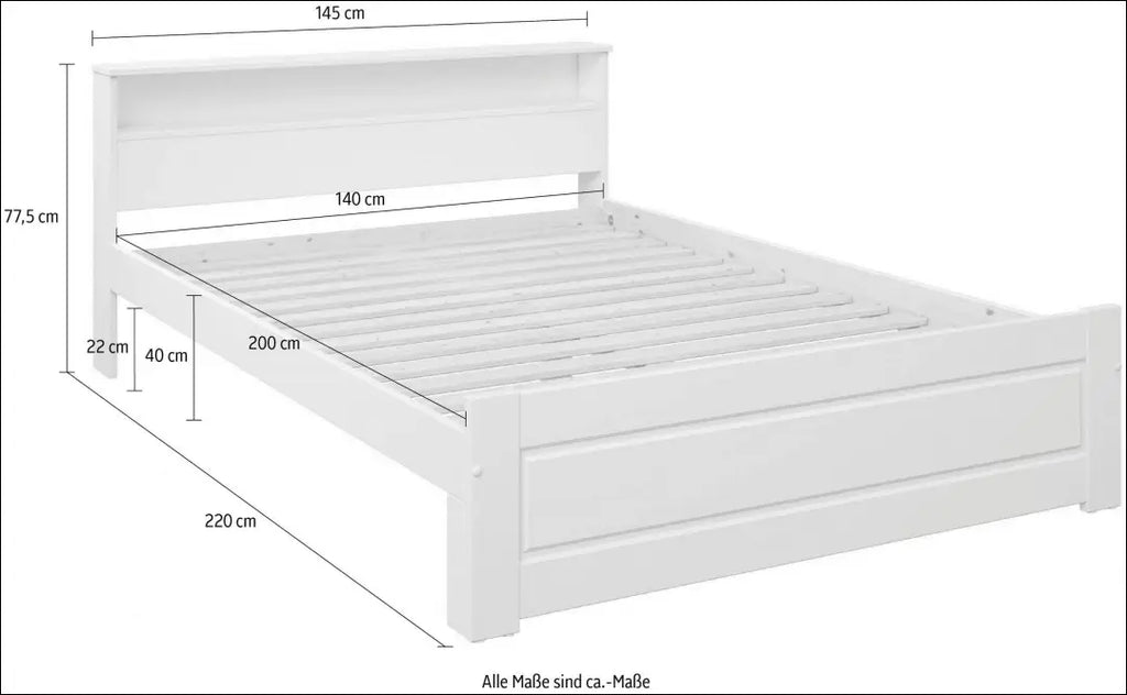77,5 cm aukštis x 145 cm plotis x 220 cm ilgis Miegama dalis - 140 cm x 200 cm |