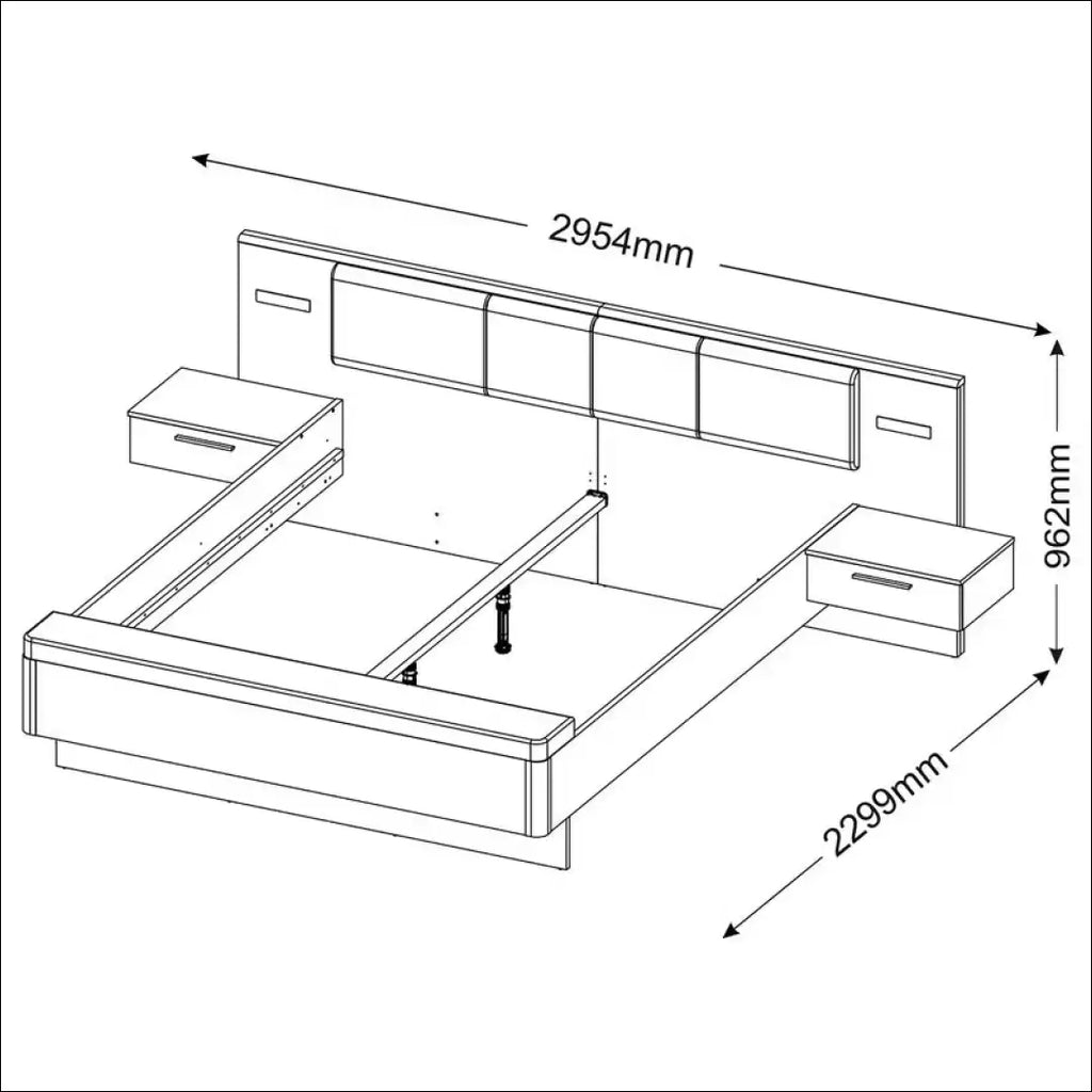 96 cm aukštis x 295 cm plotis x 230 cm ilgis Miegama dalis - 180 cm x 200 cm |