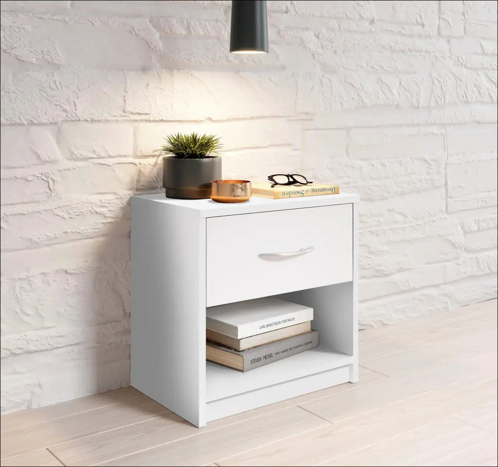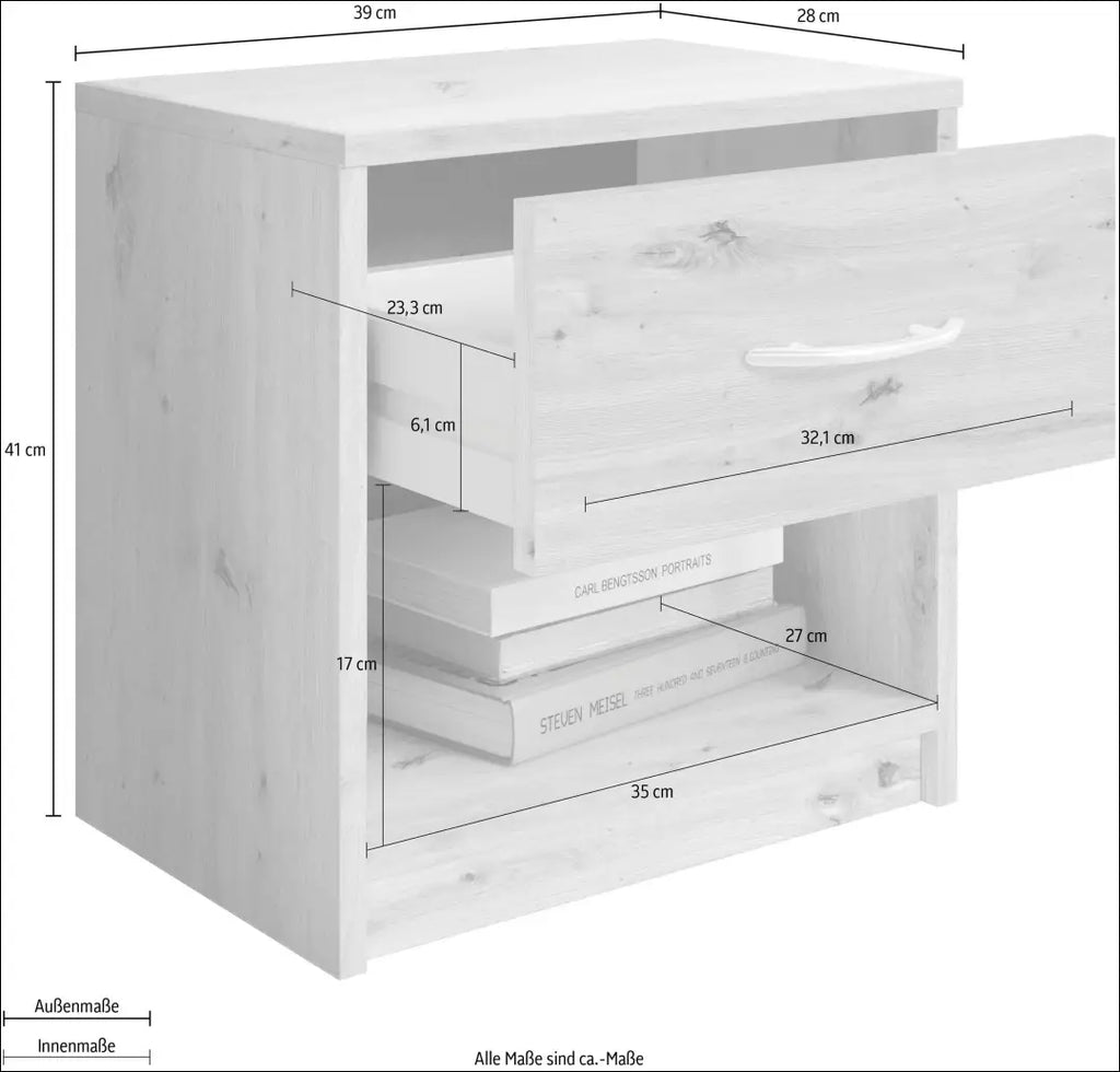 Šis praktiškas naktinis staliukas pasižymi paprastu dizainu ir naudinga daiktų laikymo vieta. Dėl modernaus ir santūraus dizaino jį lengva integruoti į įvairius miegamojo stilius. Dėl siauro pločio ši mini komoda idealiai tinka ir mažesniems kambariams. Ji turi atvirą skyrių ir stalčių, kuriame yra daug vietos skaitymo medžiagoms ar telefono įkrovikliams. Naktinis staliukas pagamintas iš lengvai prižiūrimos medžiagos. Šis praktiškas naktinis staliukas dera su įvairiais miegamojo baldais; Pastaba. Rankenėlė tamsiai pilka (žiūrėti nuotraukas). “Schlafkontor”; Siuntimo pakuotė gali būti ne originali, prekė siunčiama pilnai arba dalinai surinkta; |