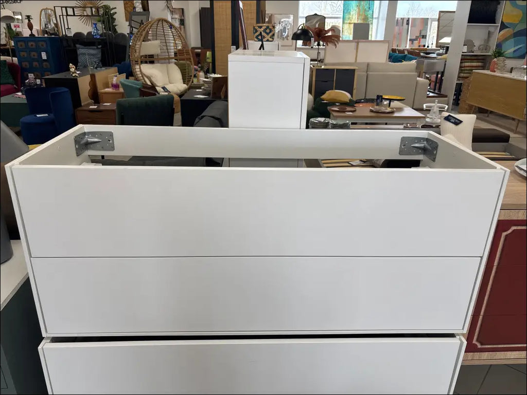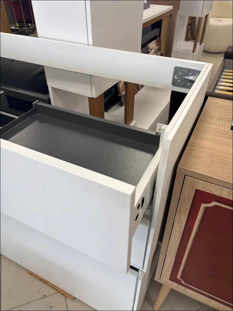 Pastaba. Grožio trūkumas - stalčiaus viduje (žiūrėti nuotraukas). Du stalčiai; Atidarymo mechanizmas - paspaudimas; Pagaminta Italijoje; “TFT ARREDO BAGNO”; Siuntimo pakuotė gali būti ne originali, prekė siunčiama pilnai arba dalinai surinkta; |