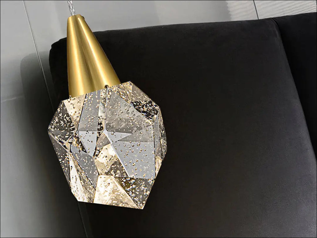 1 LED lempos šviestuvas, pagamintas iš metalo, matinio aukso spalvos. Daugiasienis gaubtas pagamintas iš vientiso stiklo su dekoratyviniais burbuliukais viduje. Reguliuojamo aukščio. 4 W LED. 450 lm. 3000 K; 50 000 val.; IP20; “Schuller”; Siuntimo pakuotė gali būti ne originali, prekė siunčiama pilnai arba dalinai surinkta; |