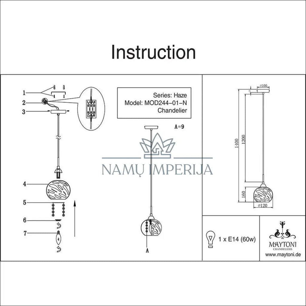 1 X E14 (40W) (lemputė nepridedama); “Maytoni”; Siuntimo pakuotė gali būti ne originali, prekė siunčiama pilnai arba dalinai surinkta; |